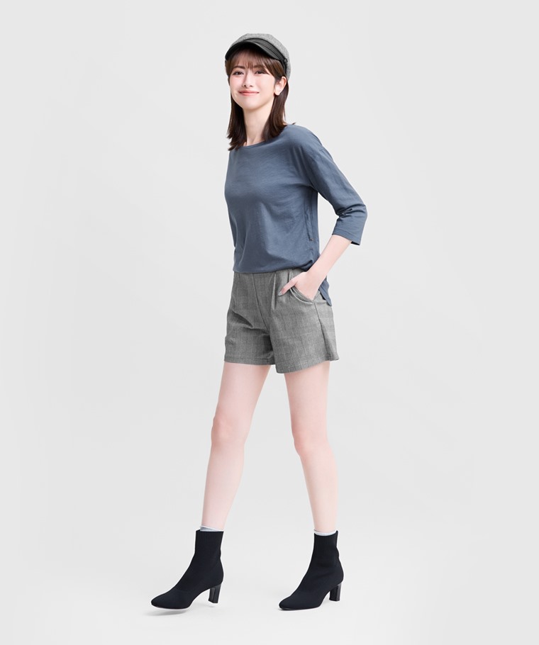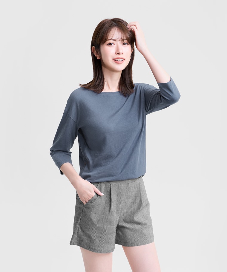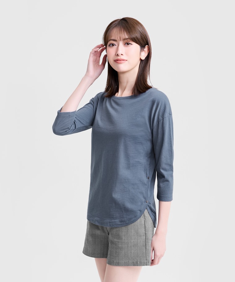 竹節棉船領七分袖上衣-女(黑色-XL)
