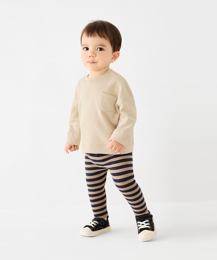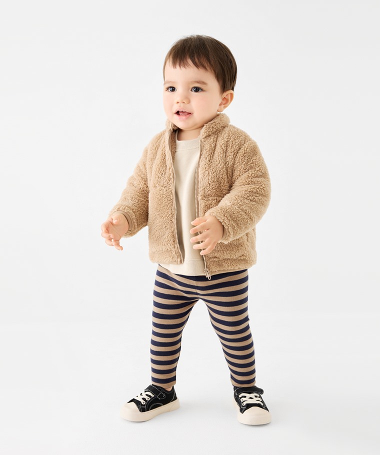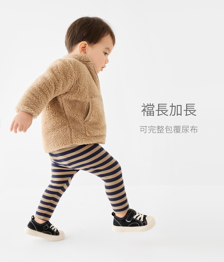 磨毛羅紋條紋內搭褲-Baby(淺紫條-70)