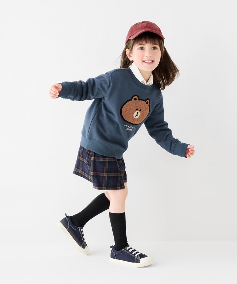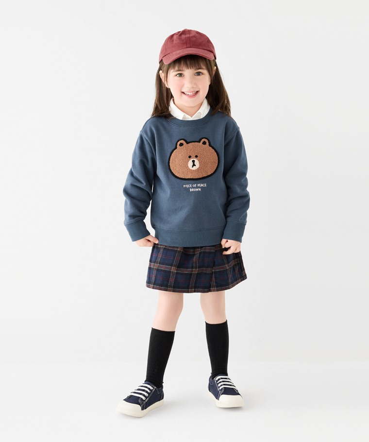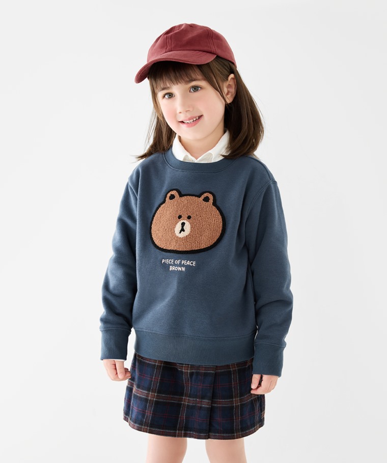 LINE FRIENDS毛圈電繡圓領衫-01-童(復古藍-100)