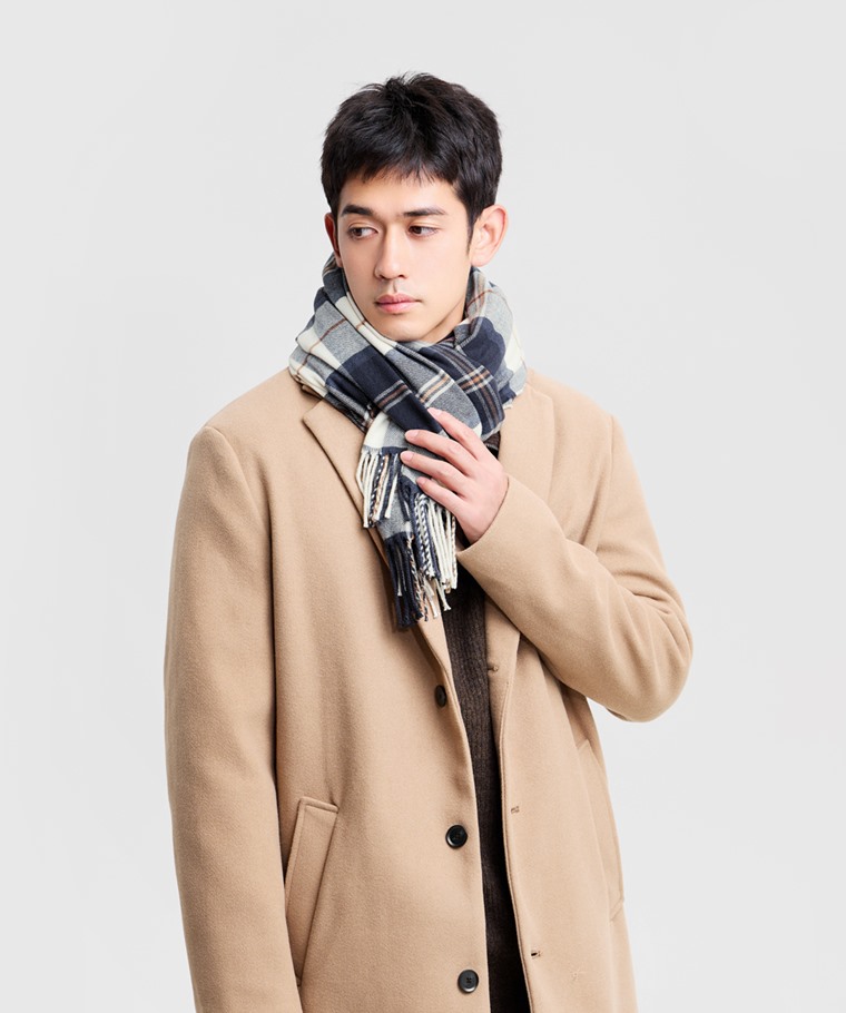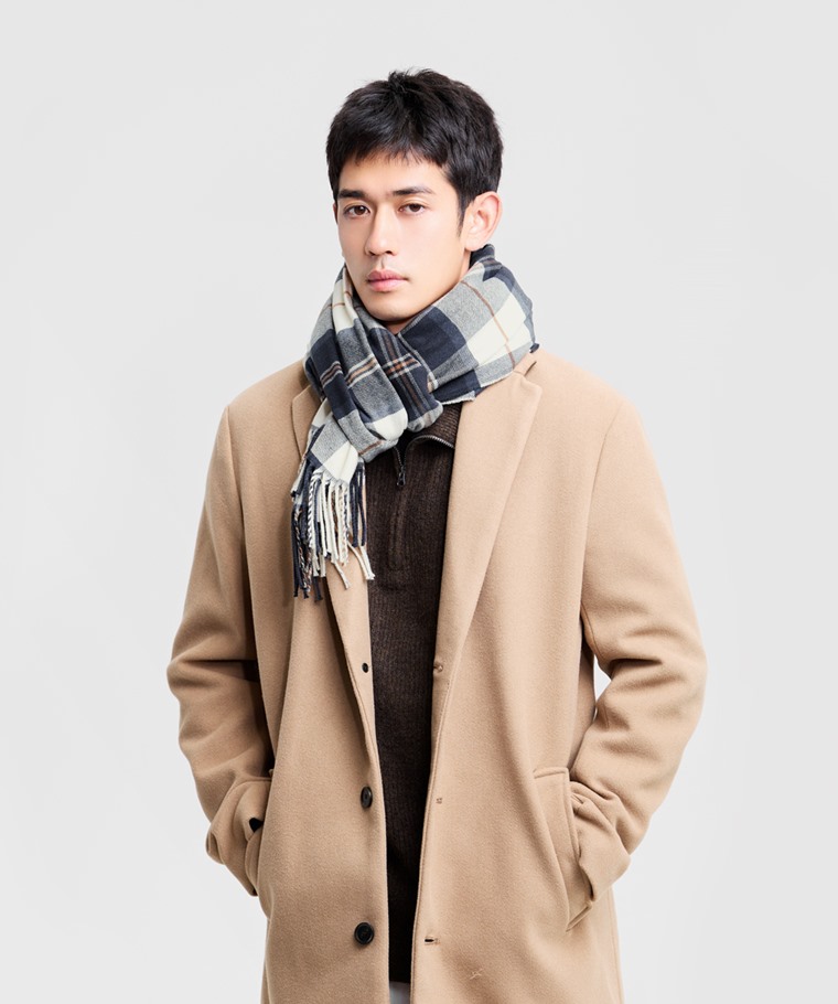 格紋圍巾-中性款(淺灰藍格-F)