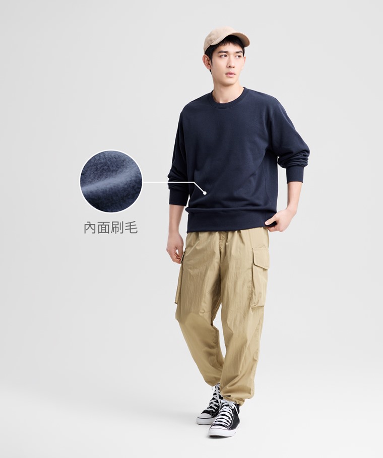 刷毛圓領衫-男(黑色-XXL)
