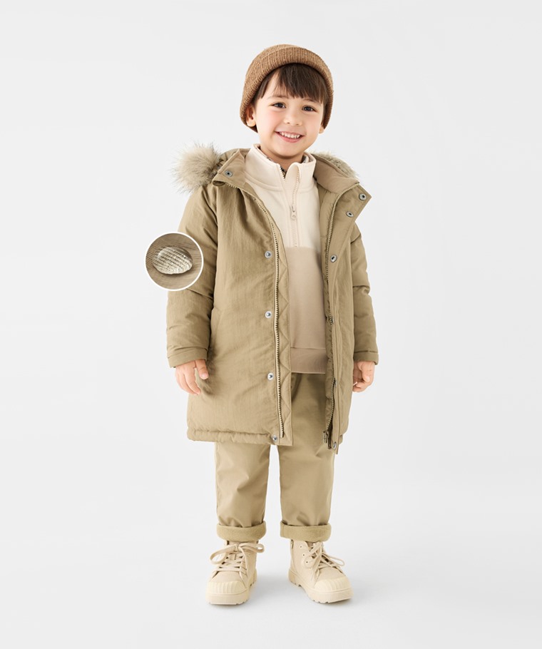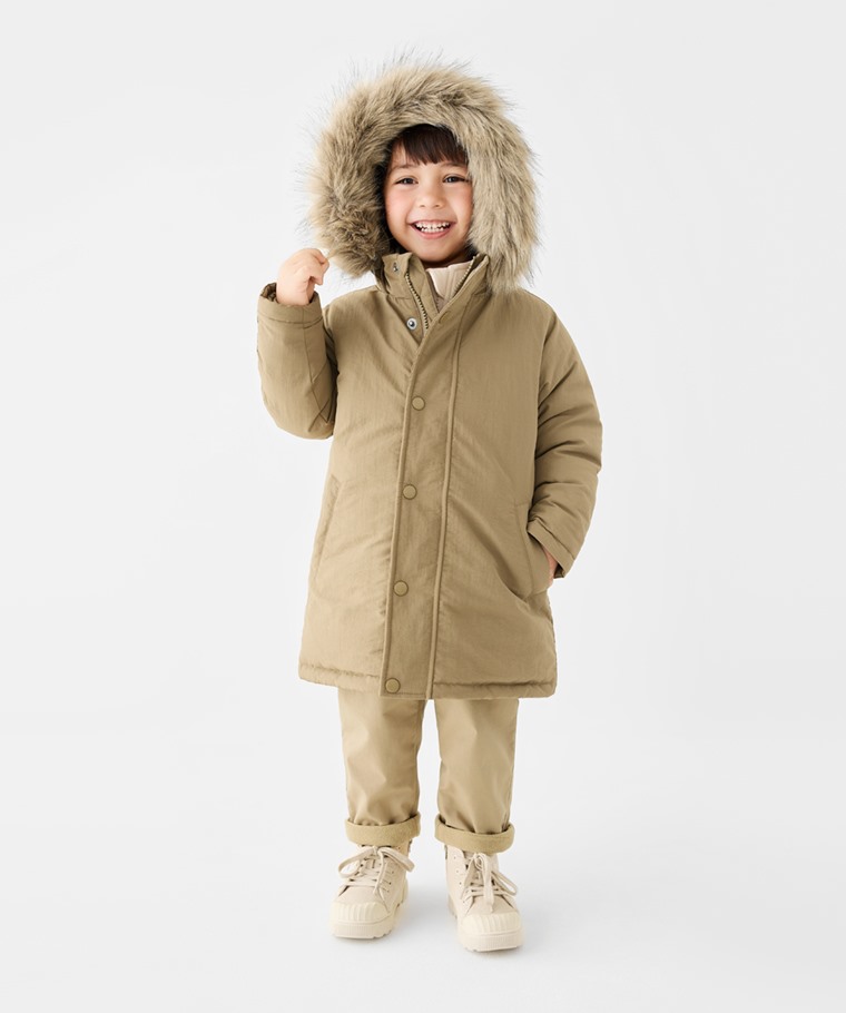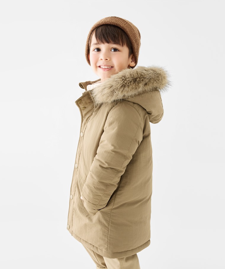 極暖羽絨中長版連帽外套-童(深藍-100)