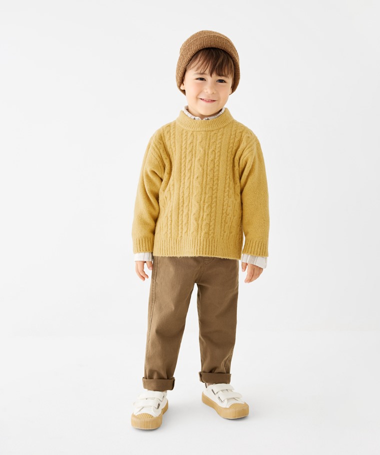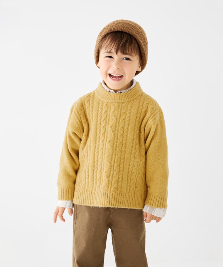 柔軟舒適麻花圓領毛衣-童(黃色-140)