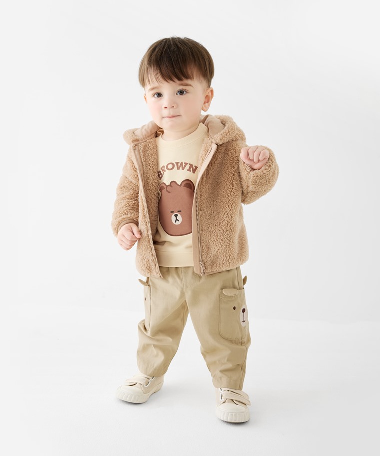 長刷毛連帽外套-Baby(淺咖-100)