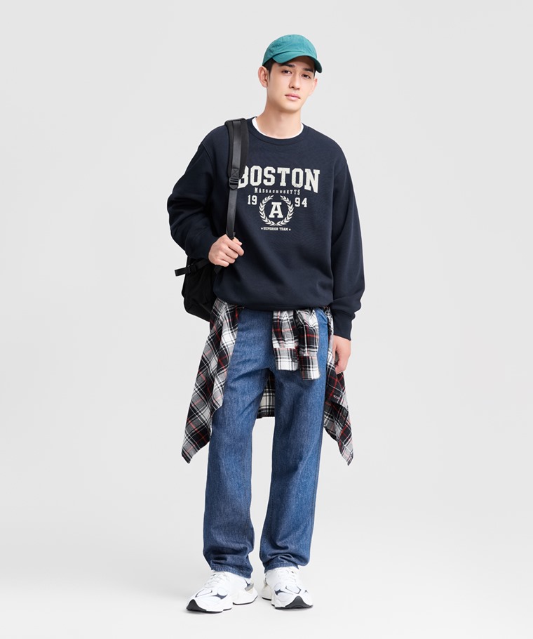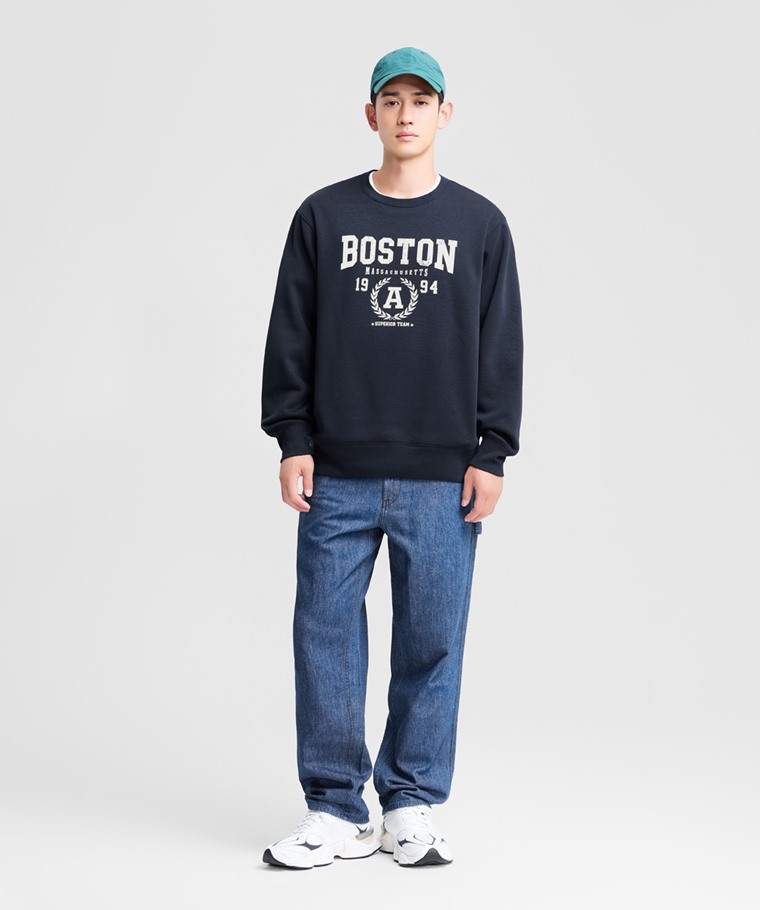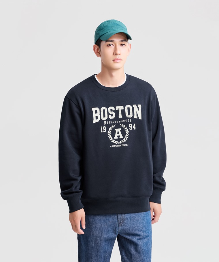 文字刷毛印花圓領衫-02-男(藏青-S)
