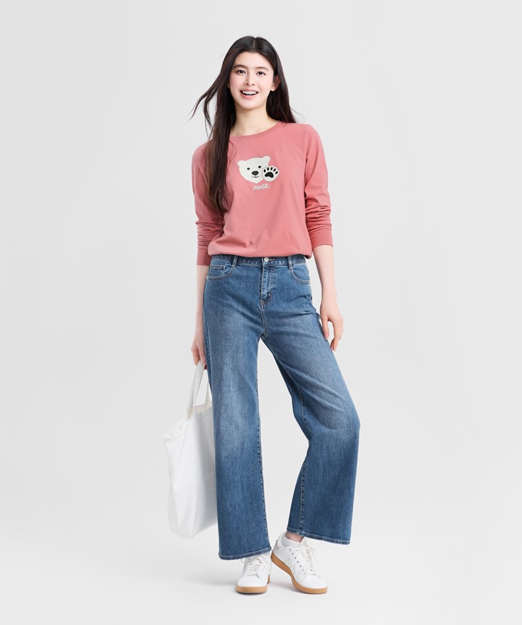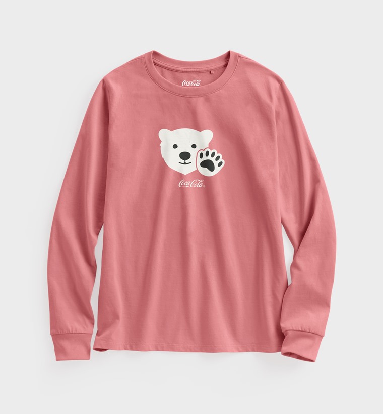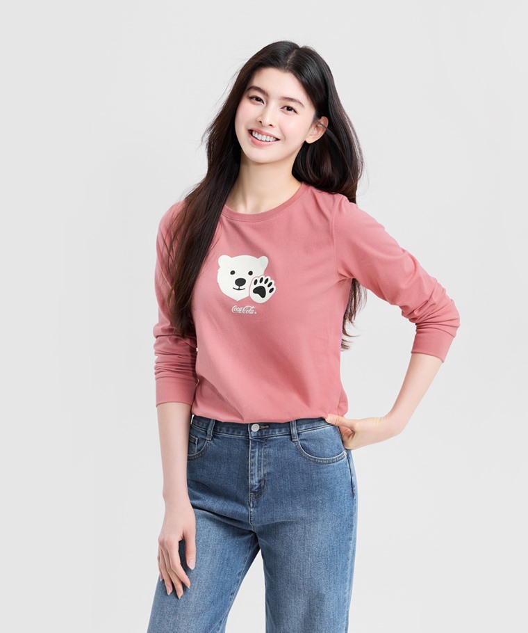 可口可樂長袖印花T恤-01-女(灰粉-XL)