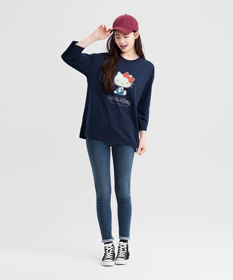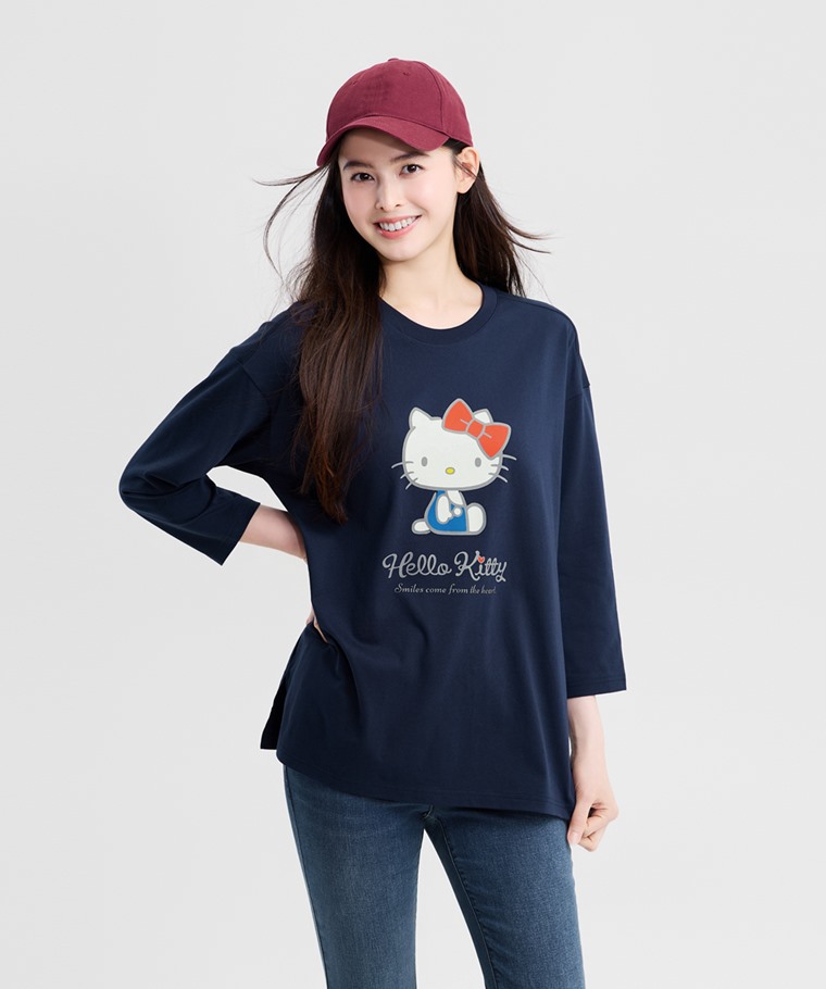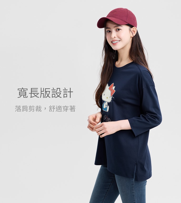 三麗鷗寬長版八分袖印花T恤-03-女(藏青-S)