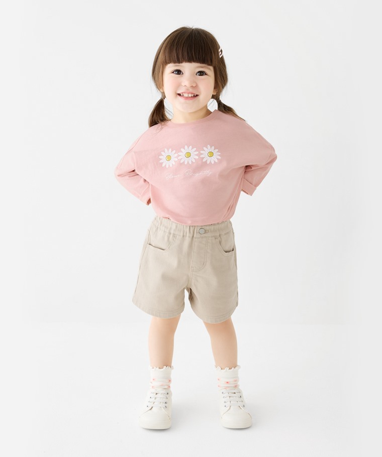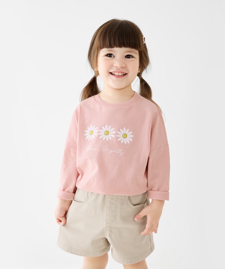 竹節棉寬鬆印花T恤-02-童(淺灰粉-110)