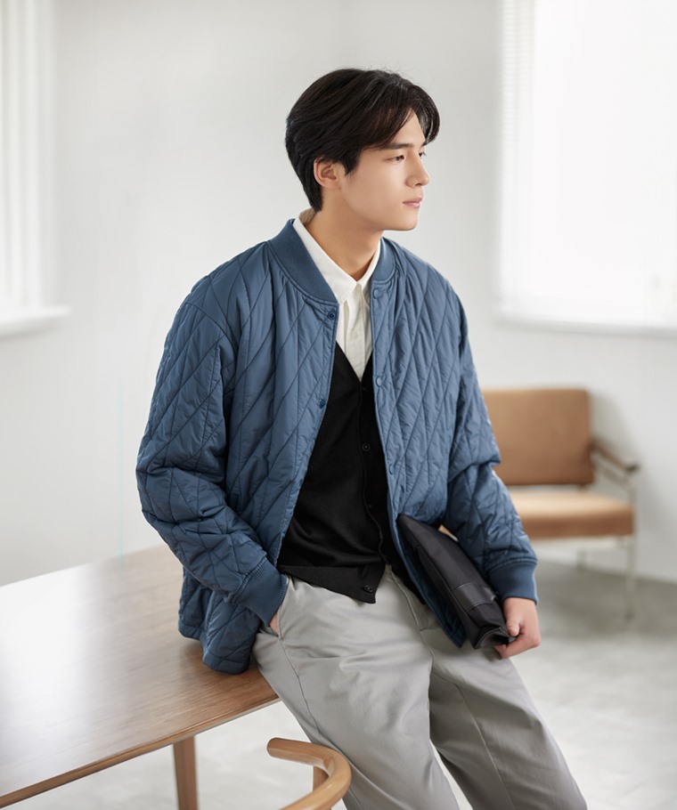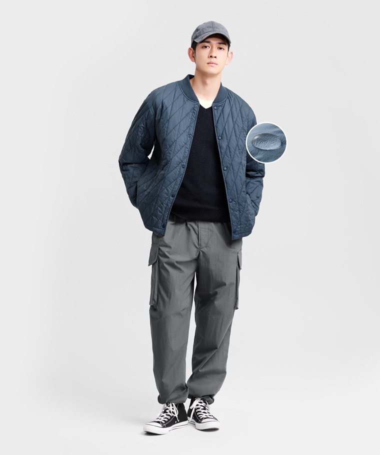 輕型鋪棉壓紋外套-男(卡其-XXL)
