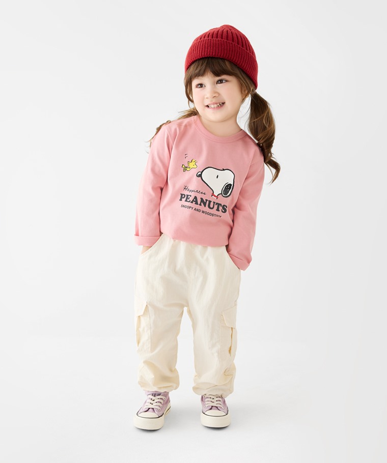史努比系列長袖印花T恤-02-童(米杏-110)