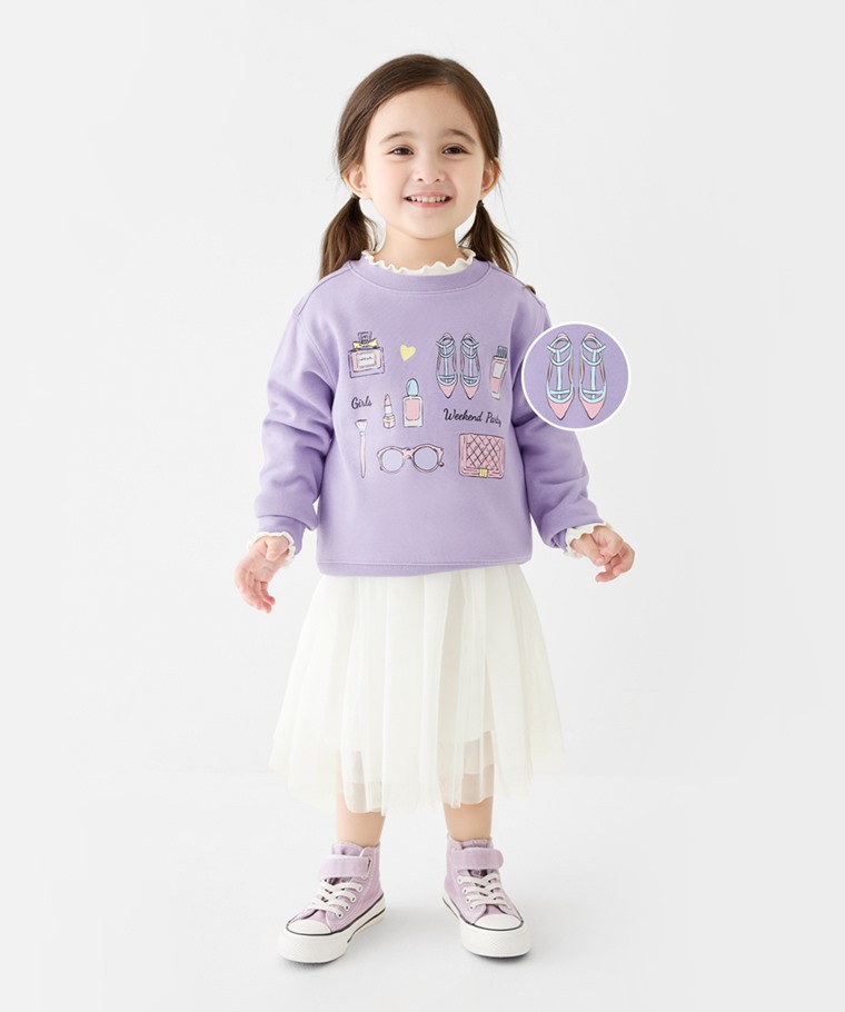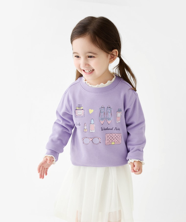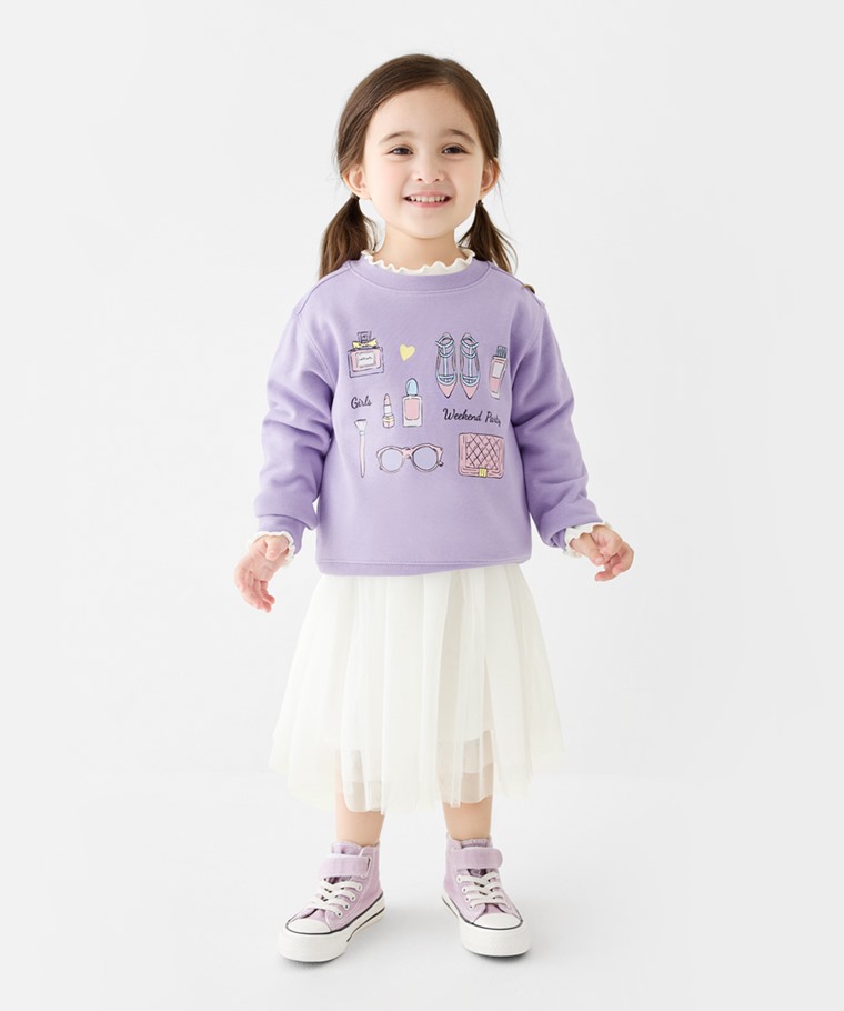 夢幻派對毛圈印花圓領衫-童(淺藍紫-100)