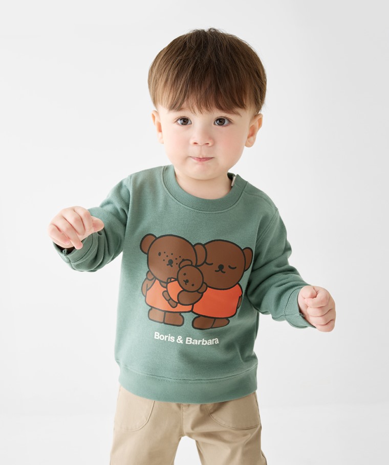 Miffy and Friends毛圈印花圓領衫-03-Baby(灰綠-80)