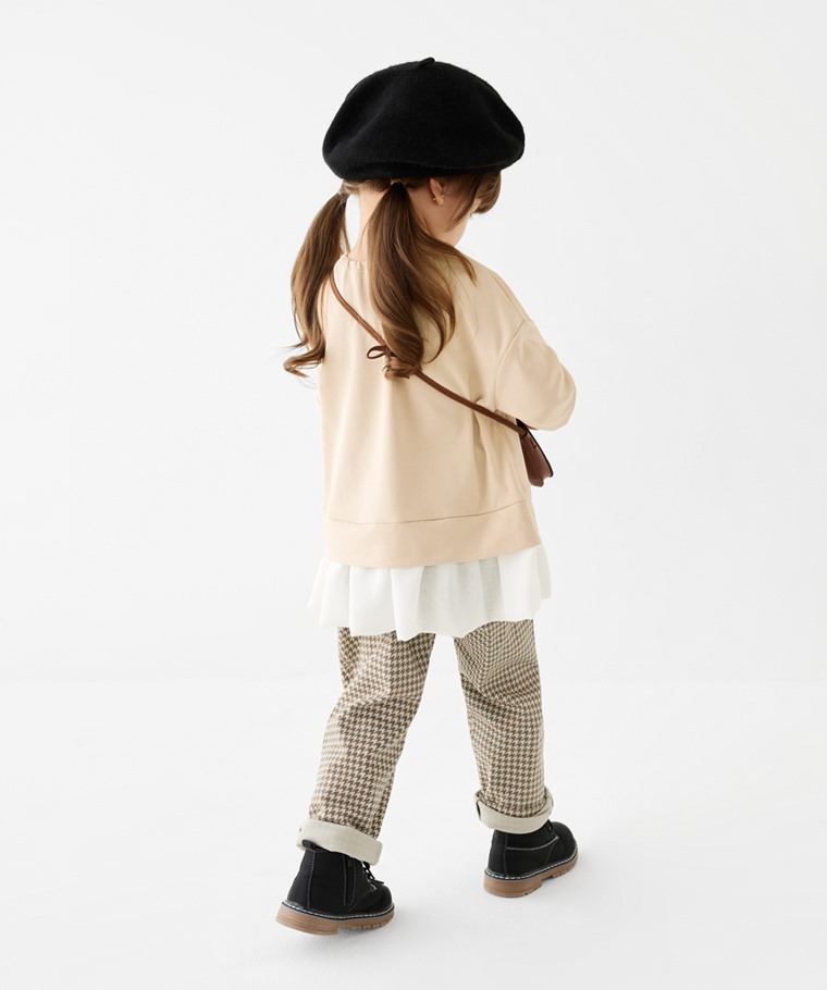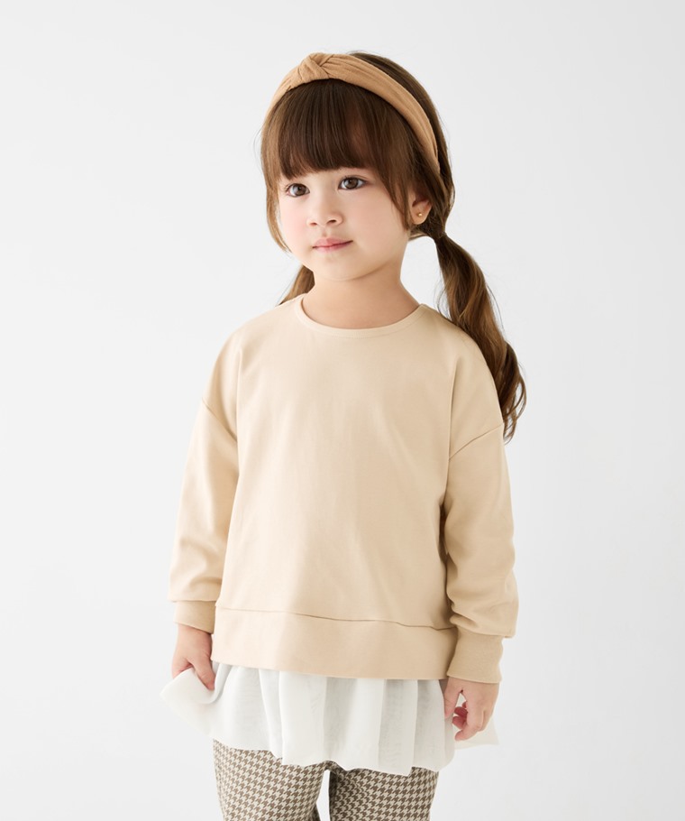 棉質寬版拼接荷葉上衣-童(淺卡其-100)
