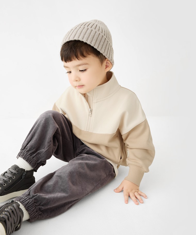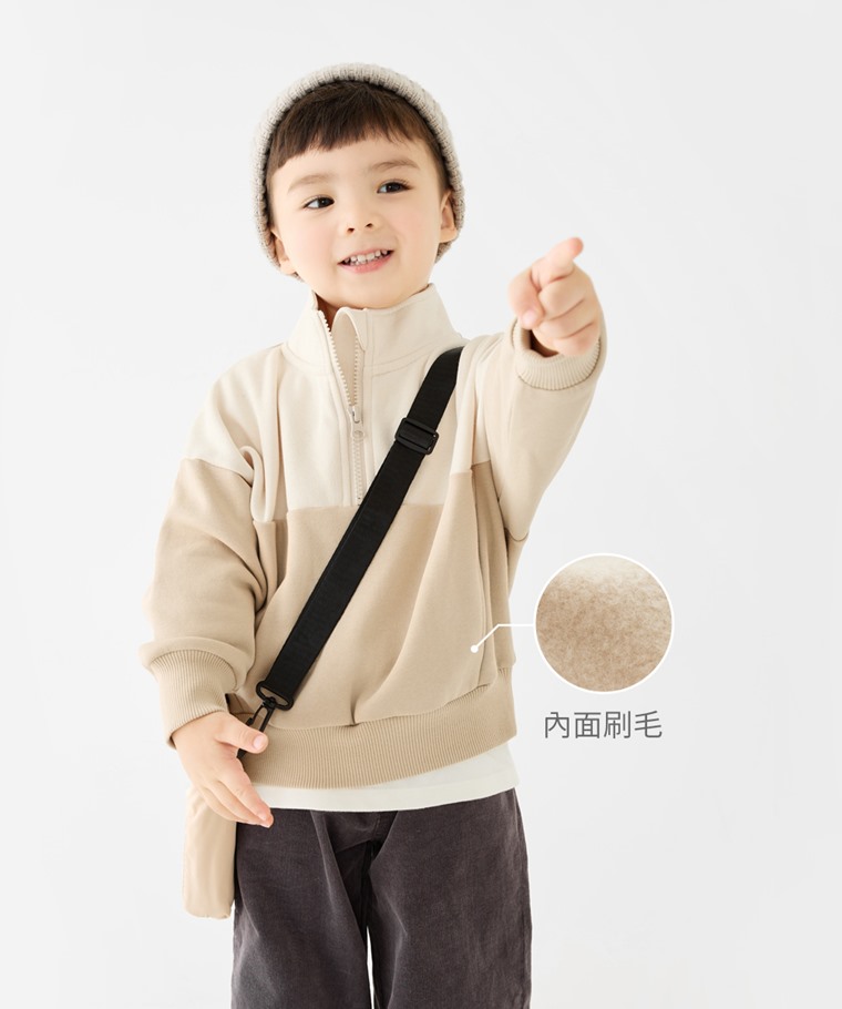 刷毛半開襟寬版上衣-童(復古藍-110)