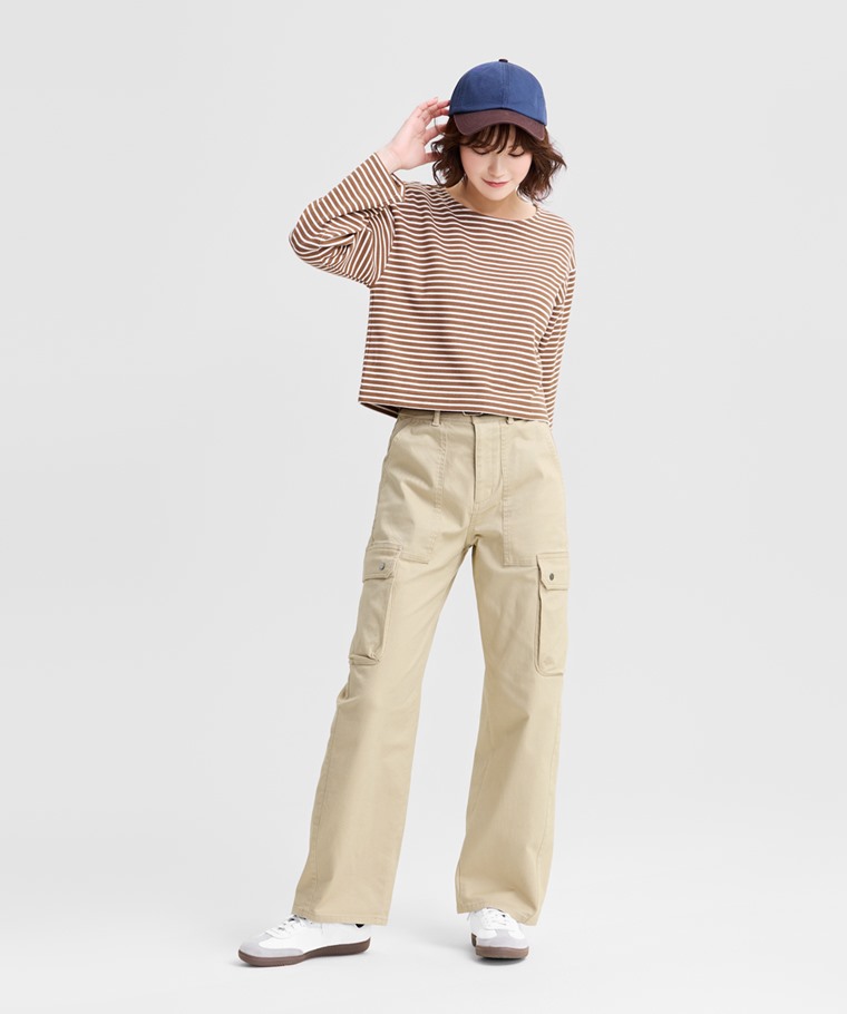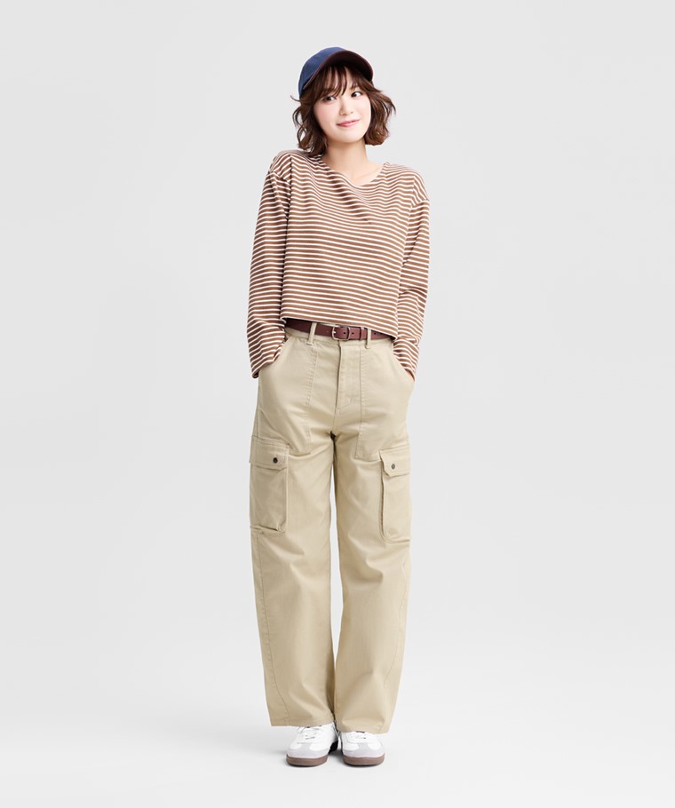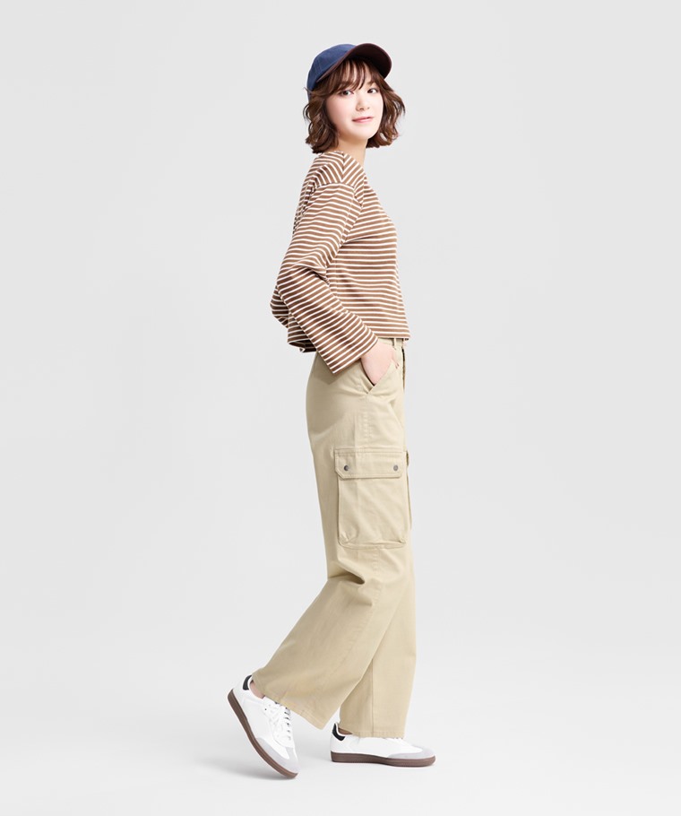 棉質彈性工裝錐形褲-女(深灰-XL)