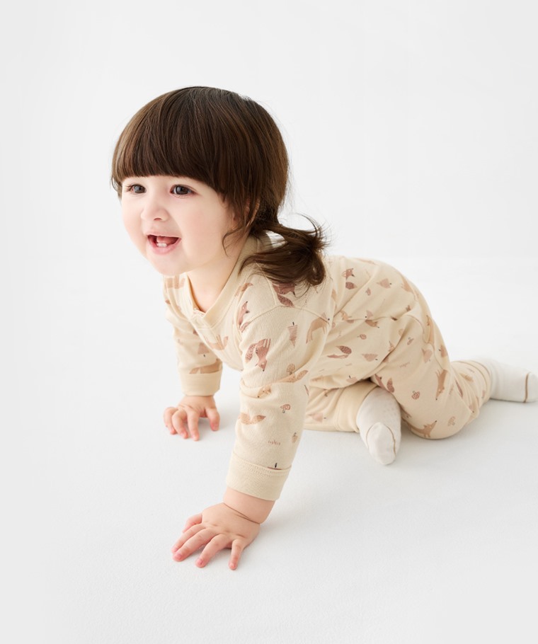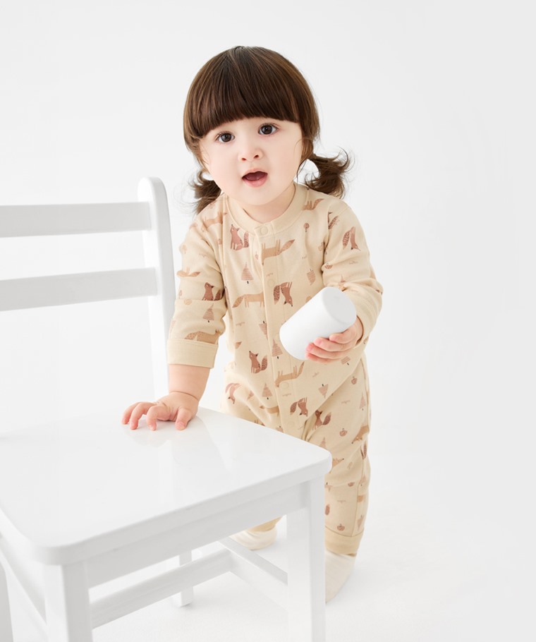 純棉羅紋印花連身衣-Baby(米杏-60)