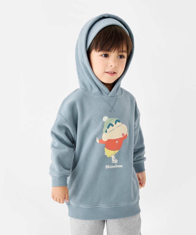 蠟筆小新Fleece寬鬆連帽上衣-童(粉桔-110)