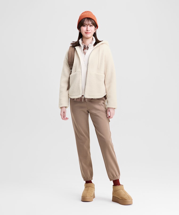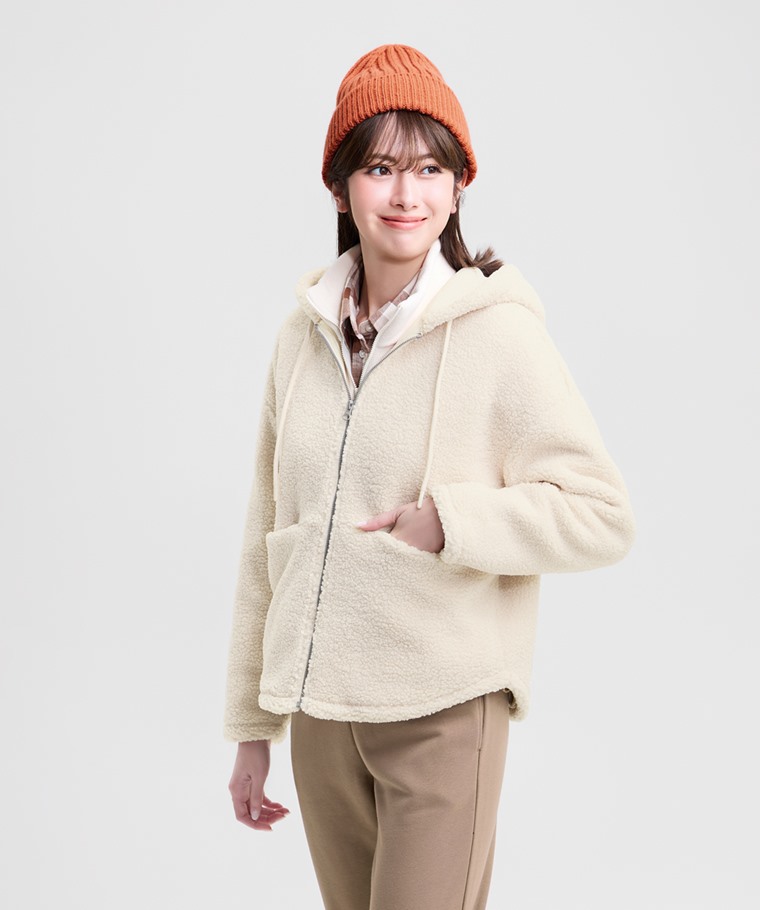 仿羊羔絨連帽外套-女(黑色-S)