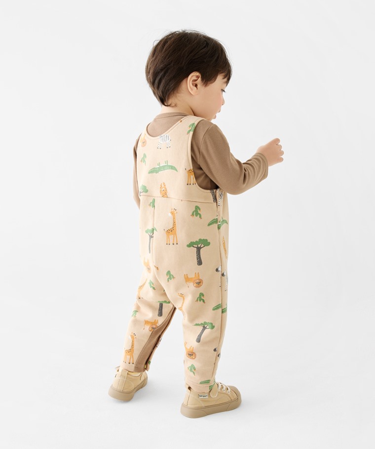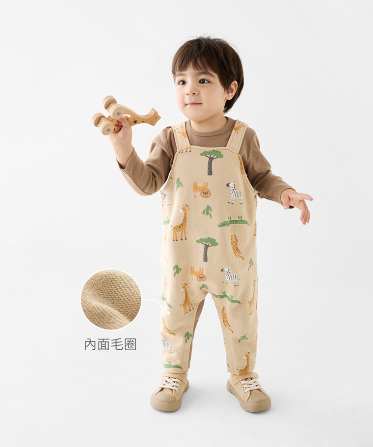棉質毛圈印花吊帶褲-Baby(淺卡其-80)