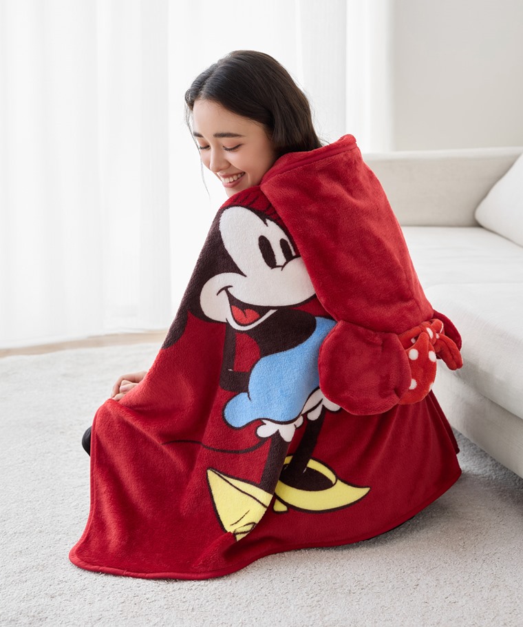 迪士尼系列珊瑚絨造型家居毯-02-中性款(紅色-134x80cm)