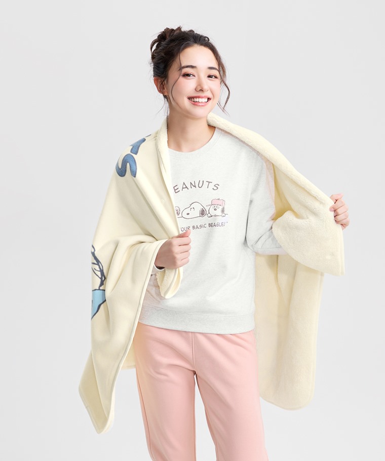 史努比系列Fleece家居毯-中性款(米白-134x80cm)