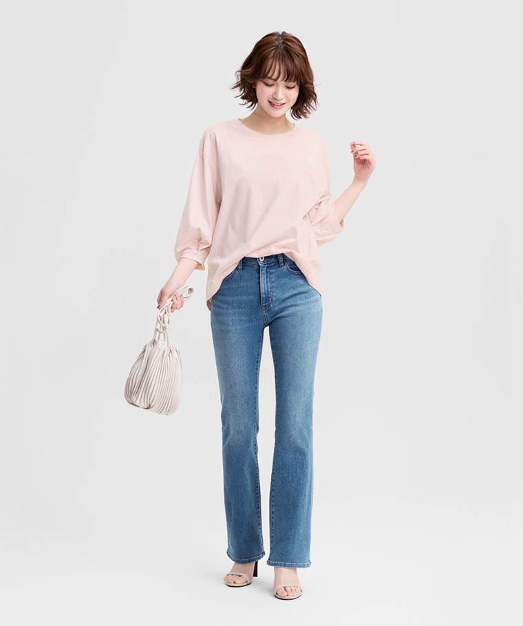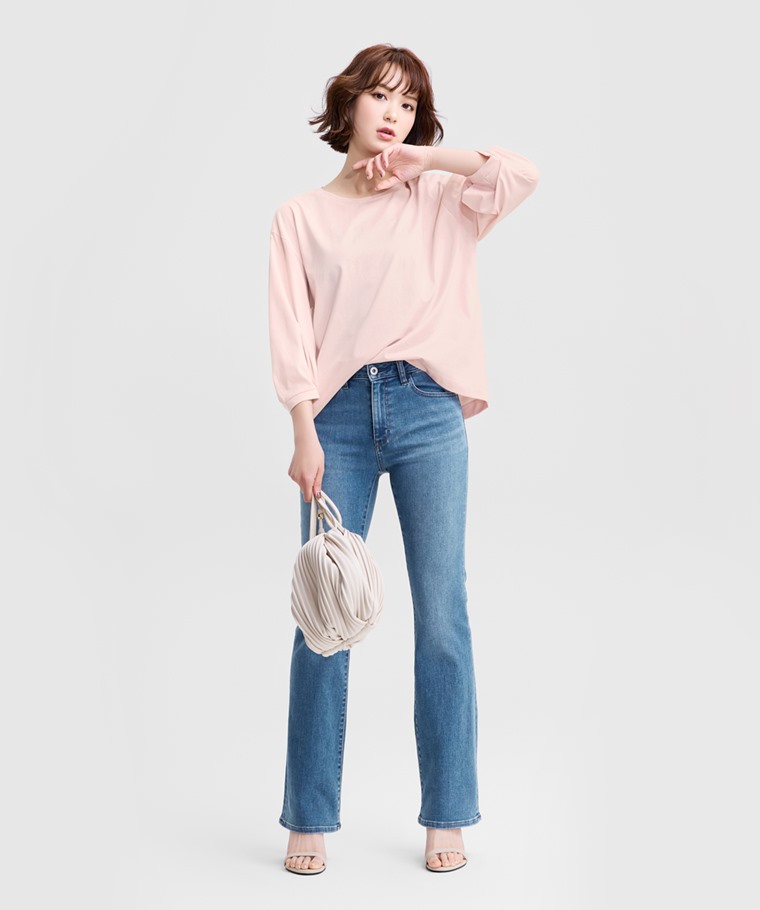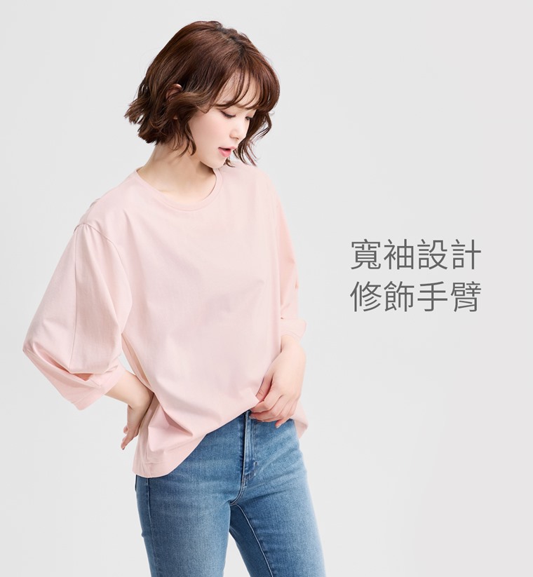 絲光棉寬版七分袖上衣-女(淺紫-L)