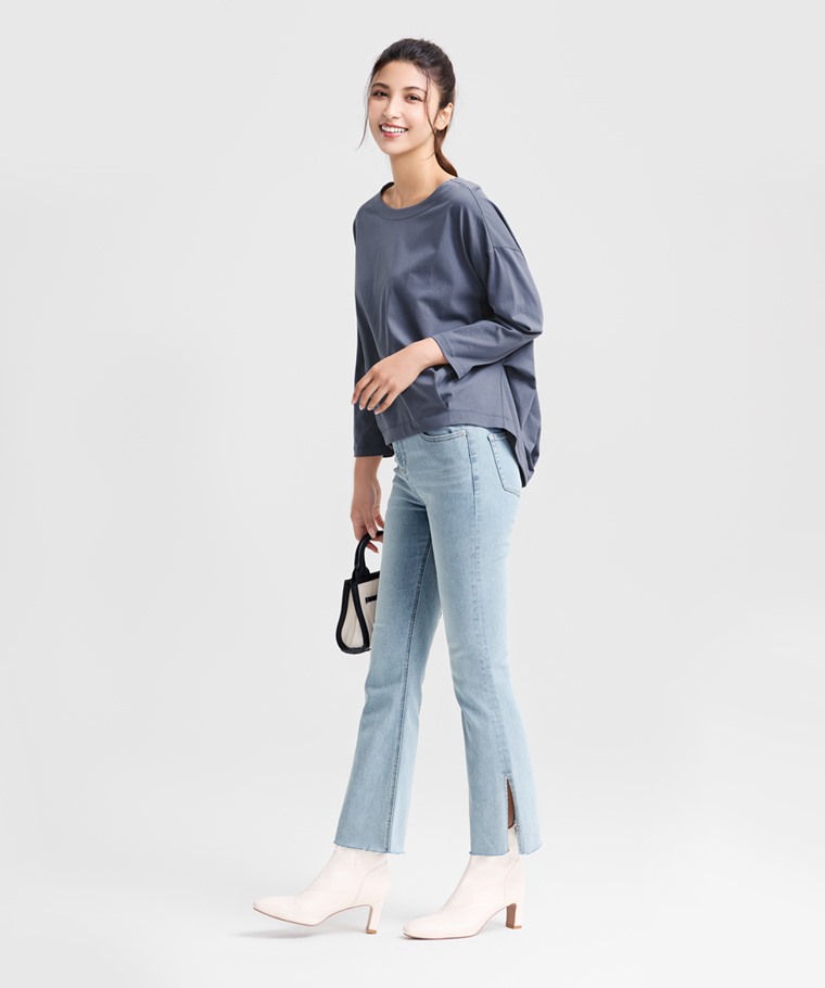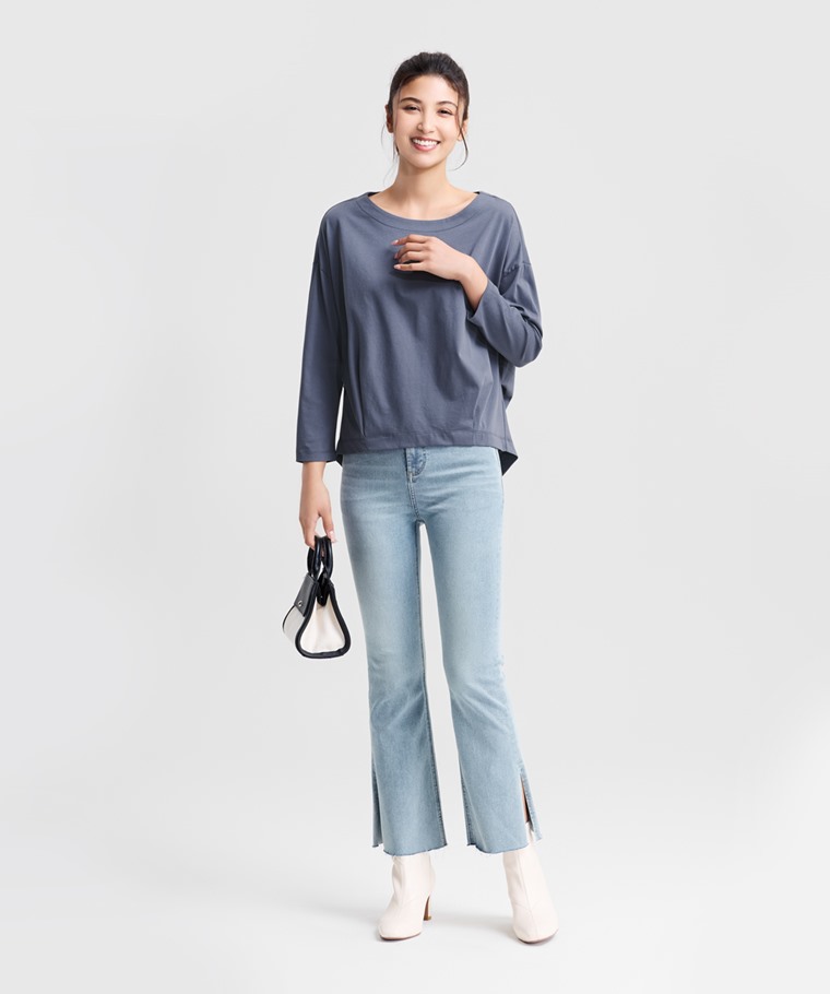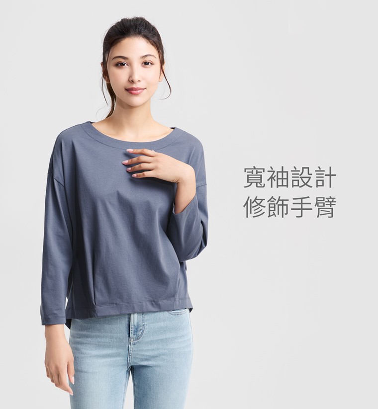 絲光棉寬版落肩九分袖上衣-女(白色-S)