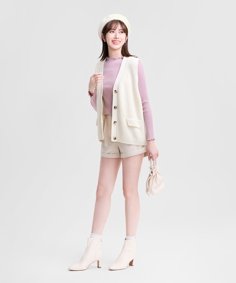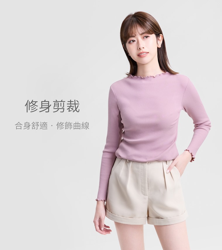 羅紋木耳邊小立領T恤-女(黑色-S)