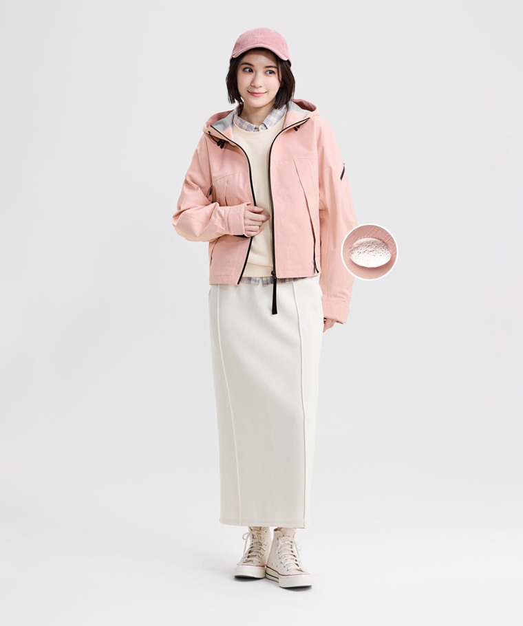 防水機能撞色寬版外套-女(杏色-S)