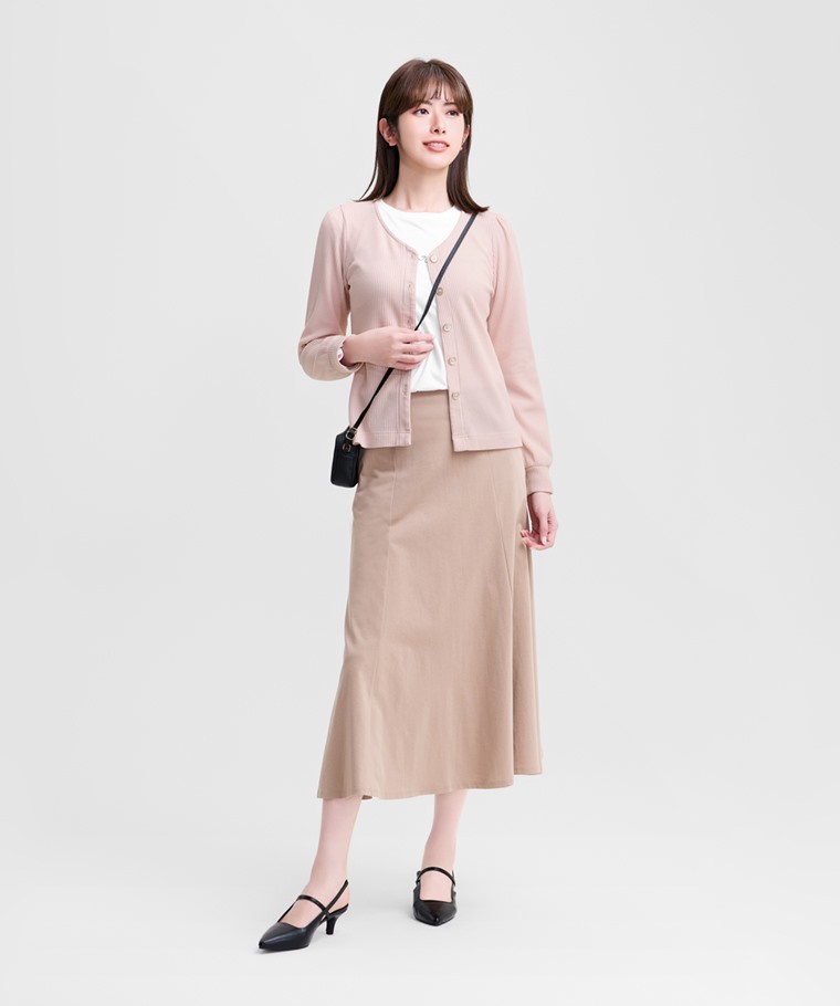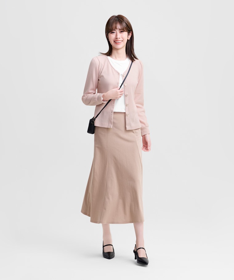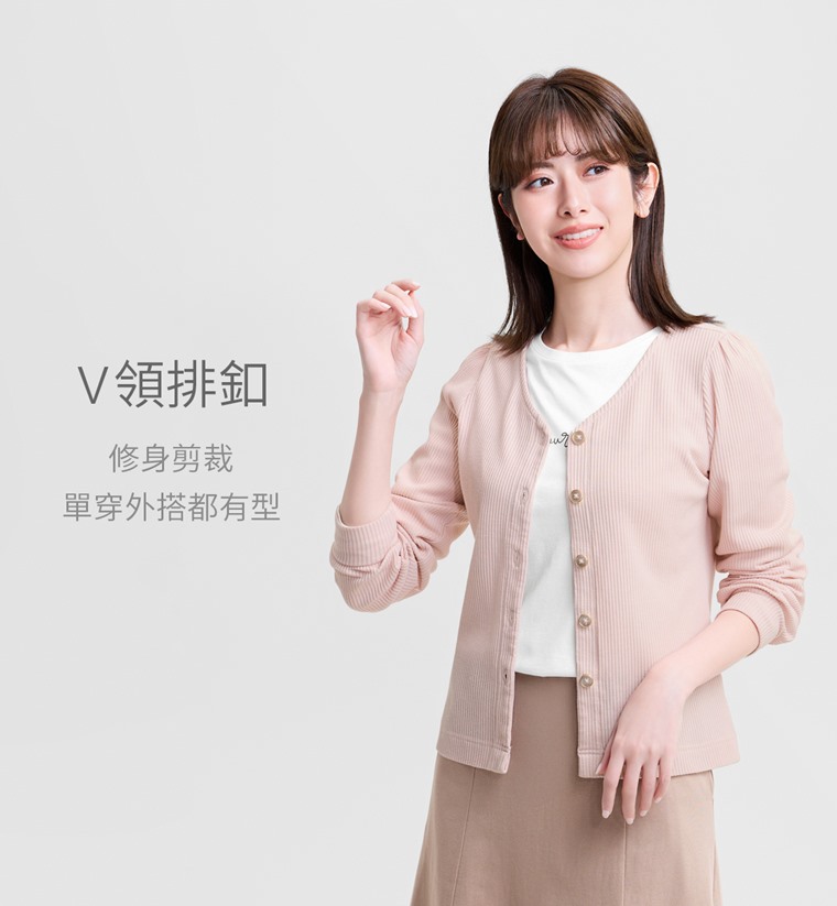 華夫格V領排釦長袖上衣-女(淡粉-S)