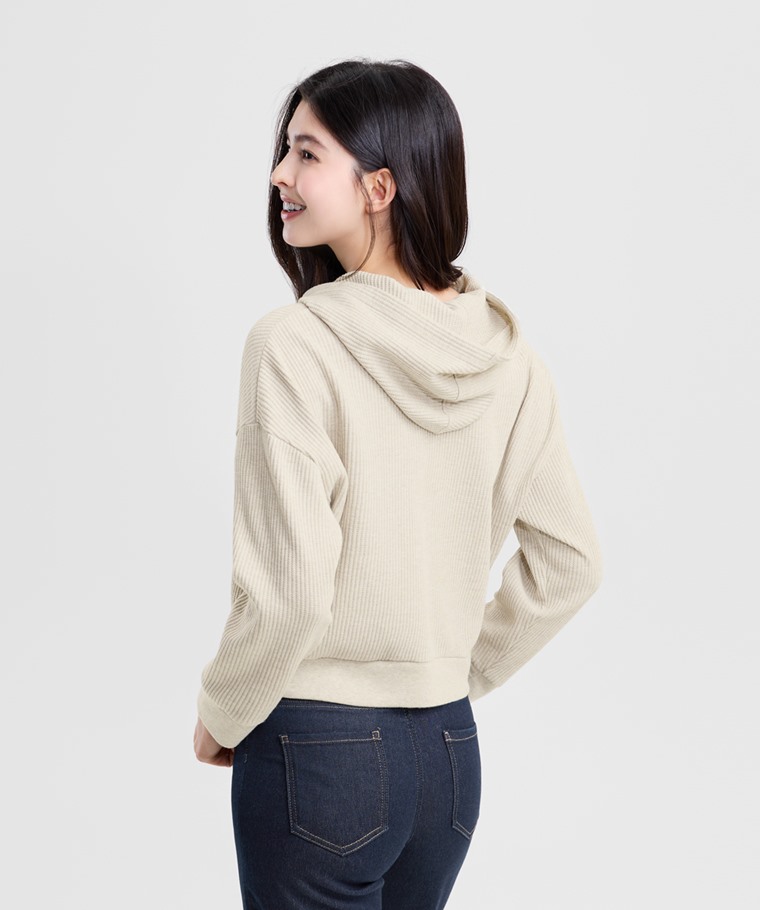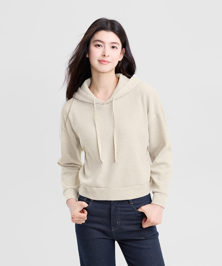 華夫格寬短版連帽上衣-女(麻花米-L)