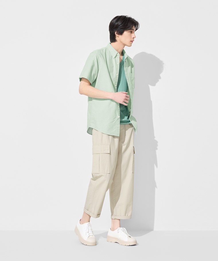 牛津短袖襯衫-男(白色-S)