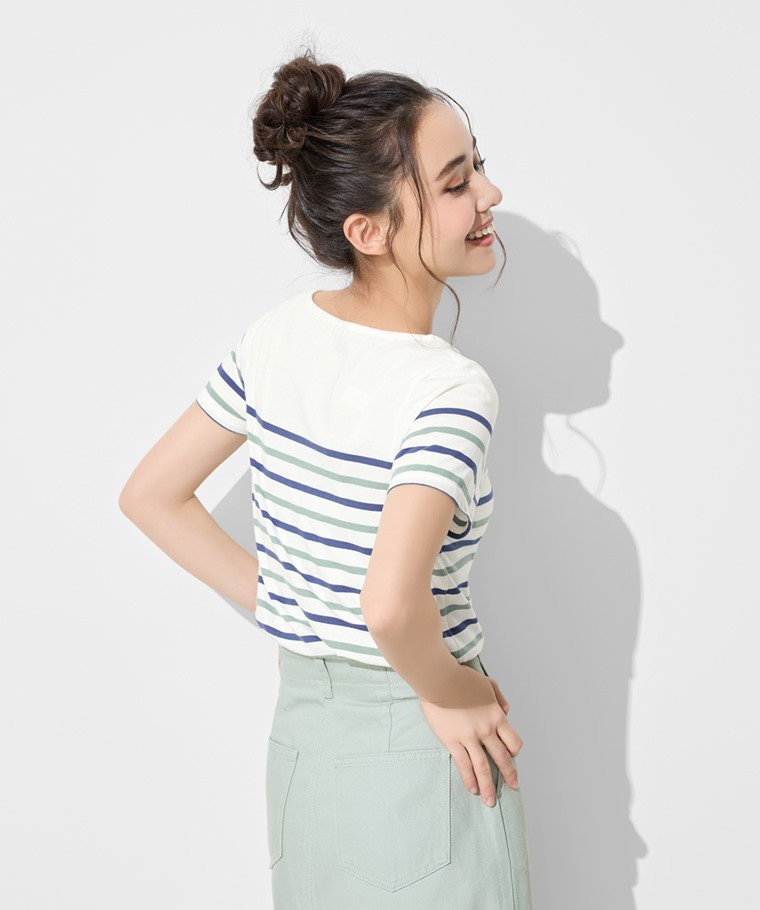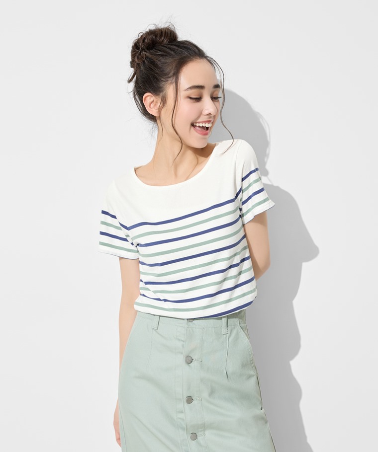 純棉船領條紋短袖T恤-女(黑白條-S)