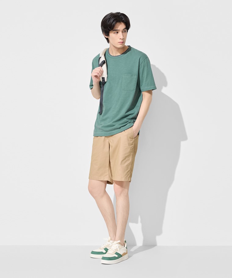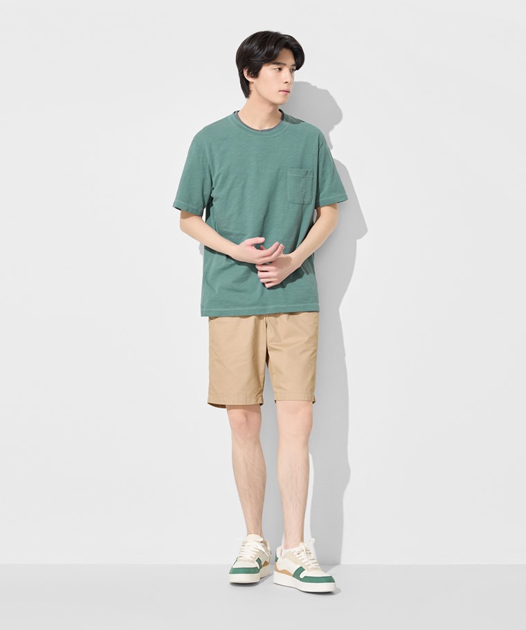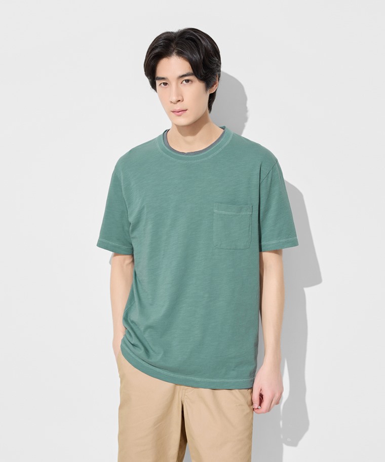 竹節棉口袋圓領T恤-男(灰卡其-S)