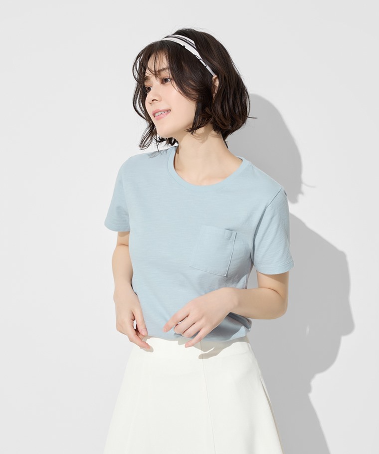 竹節棉口袋短袖T恤-女(灰粉-S)