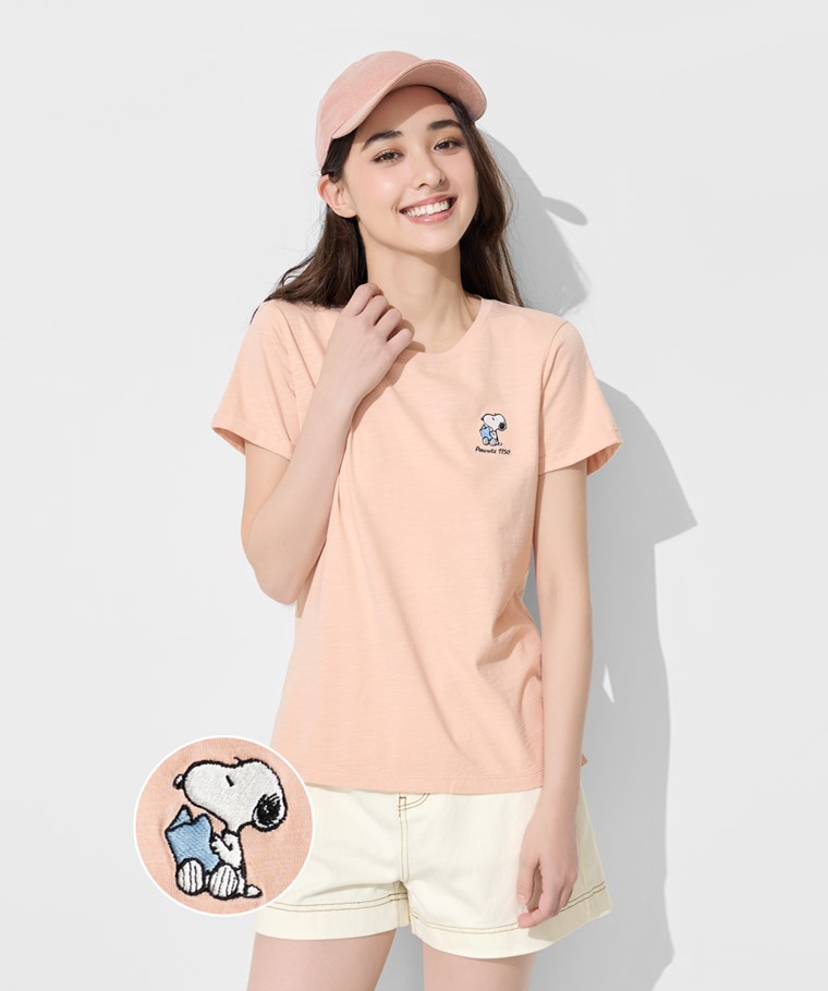史努比系列竹節棉電繡T恤-女(白色-S)