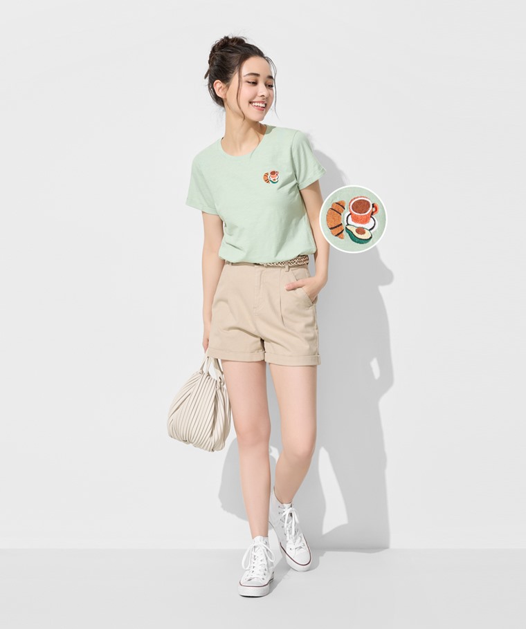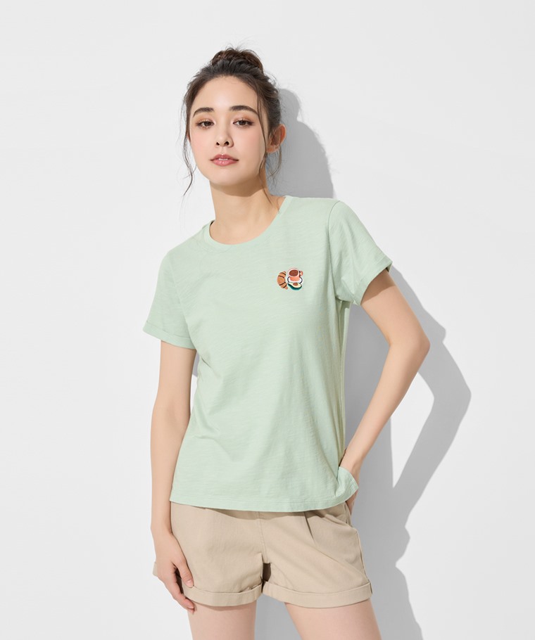 竹節棉食物電繡T恤-女(粉桔-S)