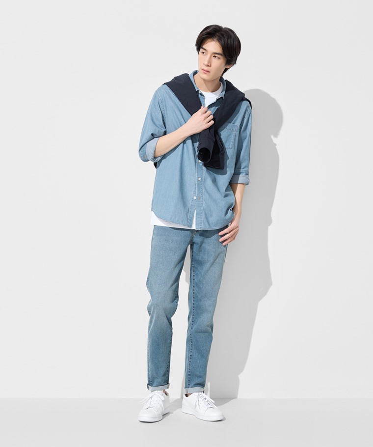 特彈Skinny Fit窄管牛仔褲-男(黑灰-33)