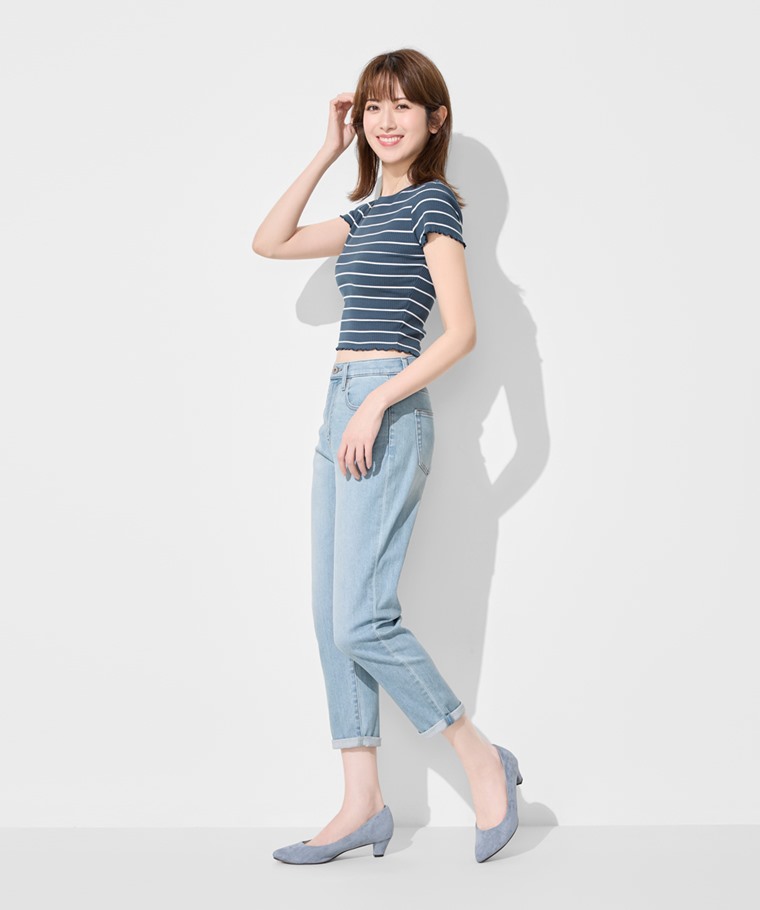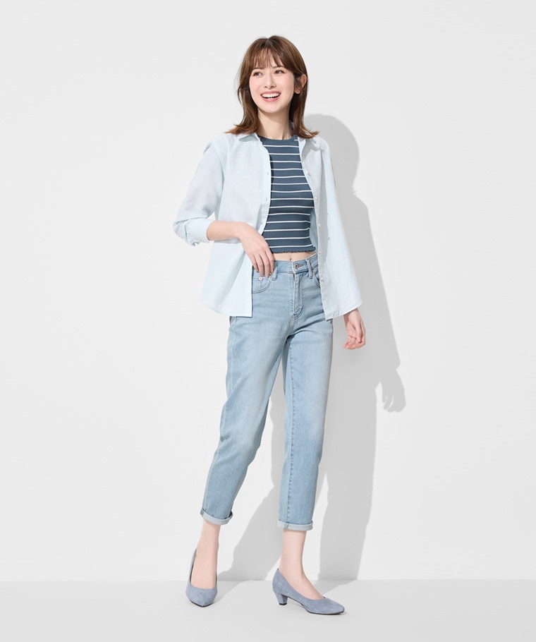 修身男友風九分牛仔褲-女(白色-23)