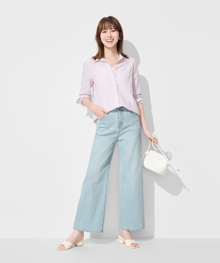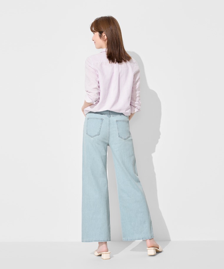 高腰牛仔寬褲-女(淺藍-S)
