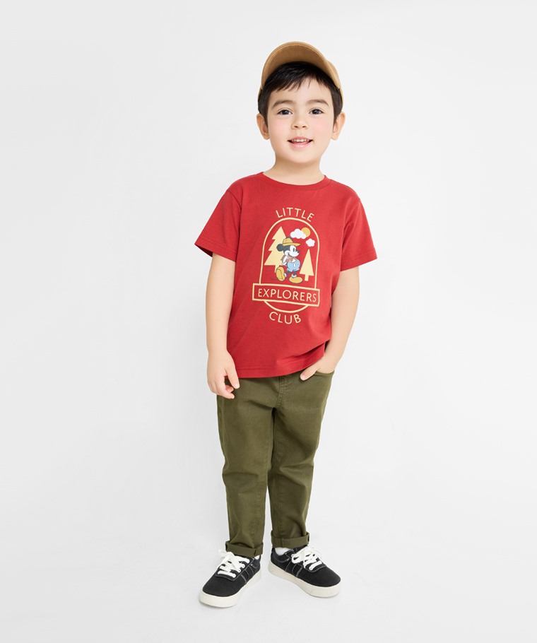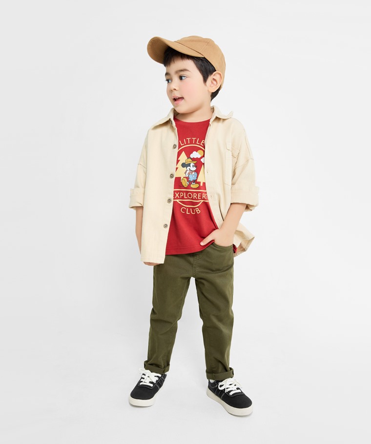 棉質彈性長褲-童(卡其-100)