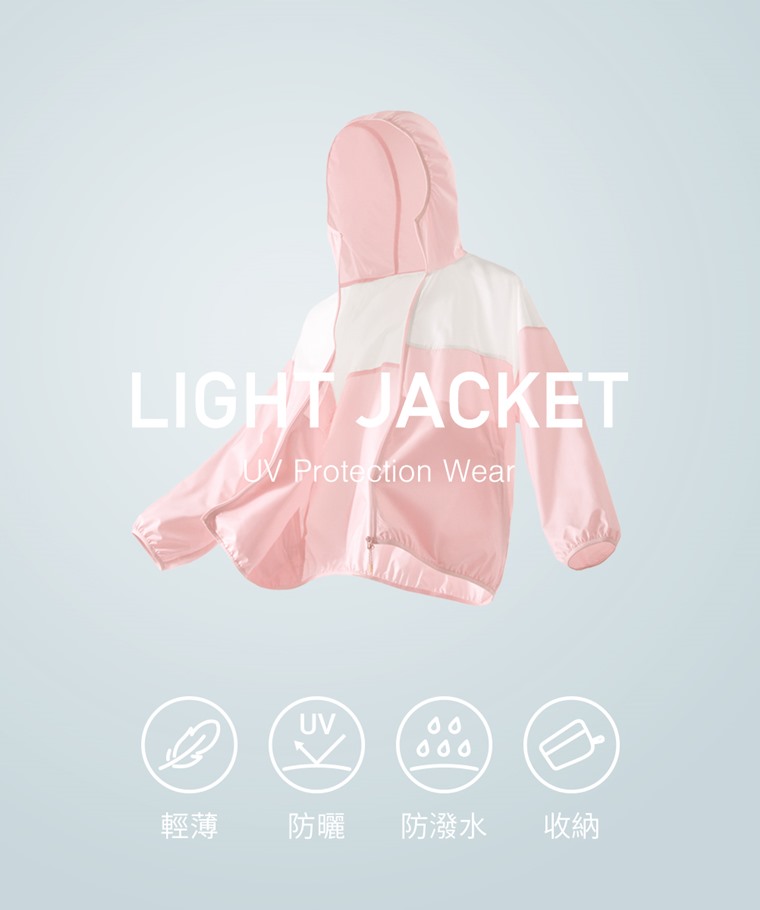 抗UV輕型配色連帽風衣外套-女(淺粉-S)