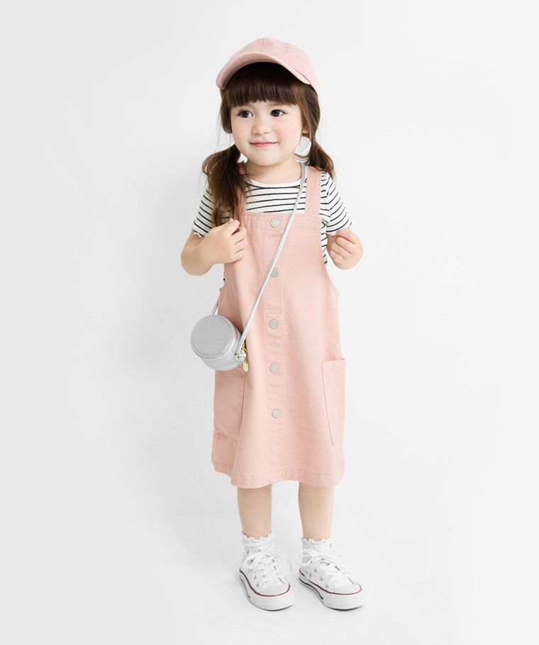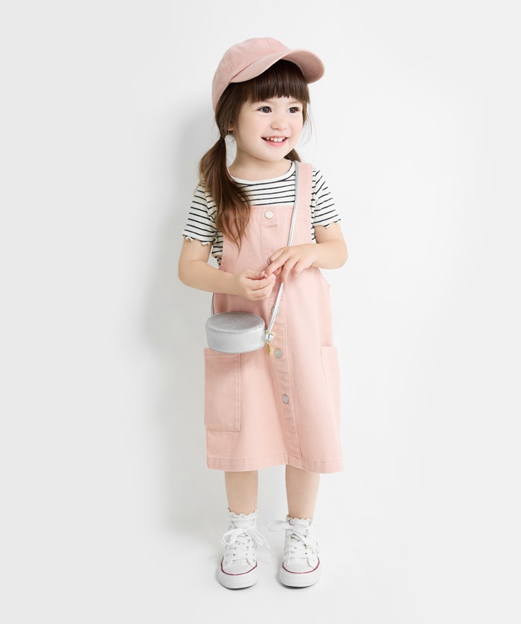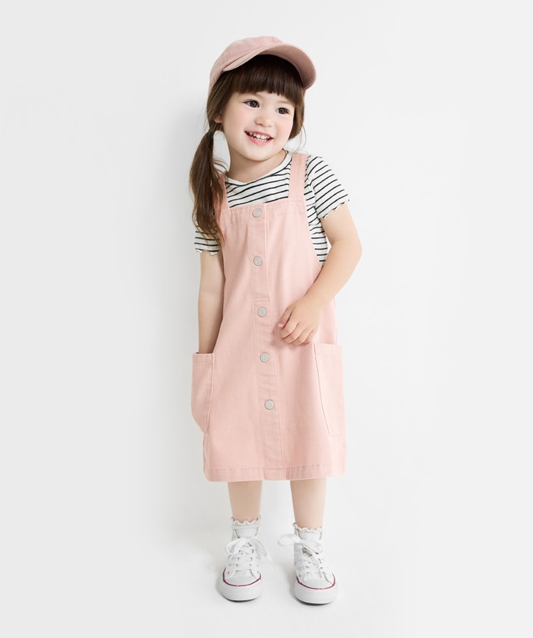 多色牛仔吊帶裙-童(淺粉-100)