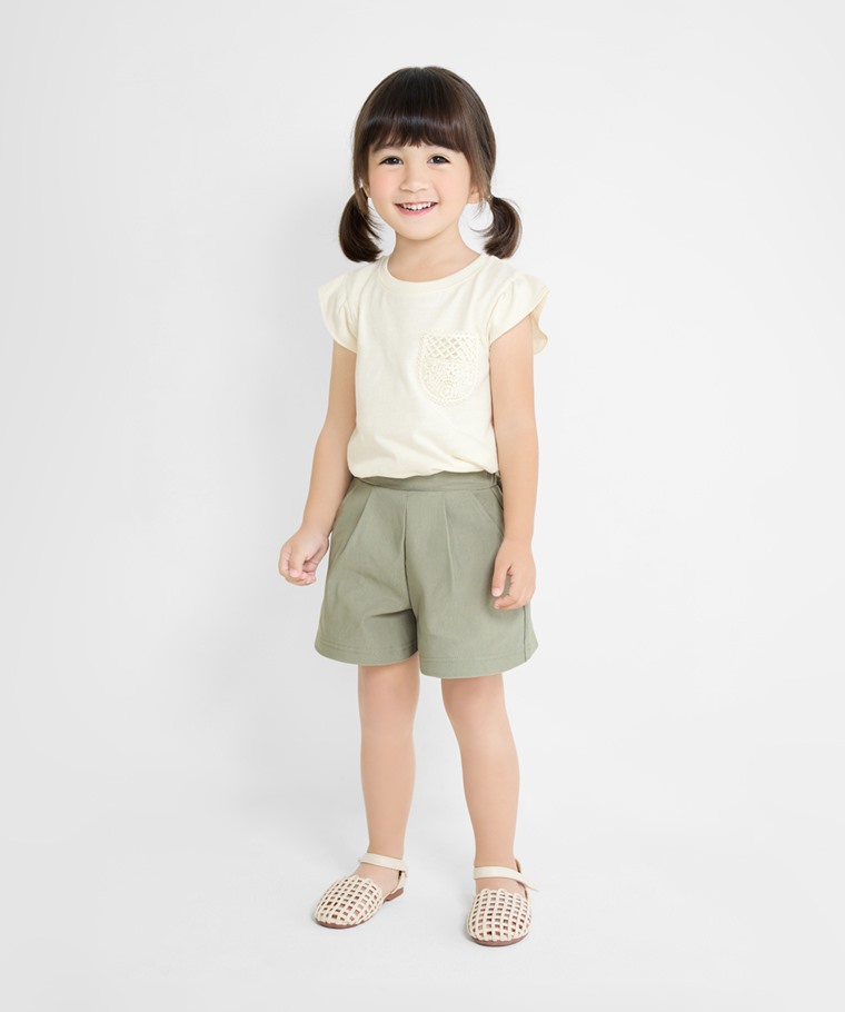 彈力打褶寬襬短褲-童(灰藍-100)