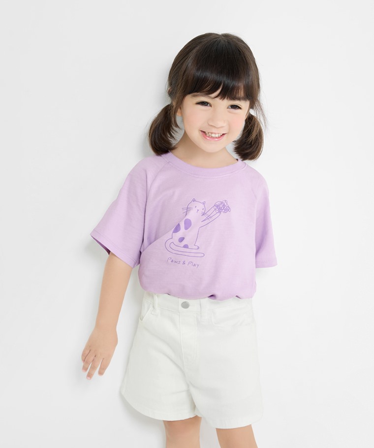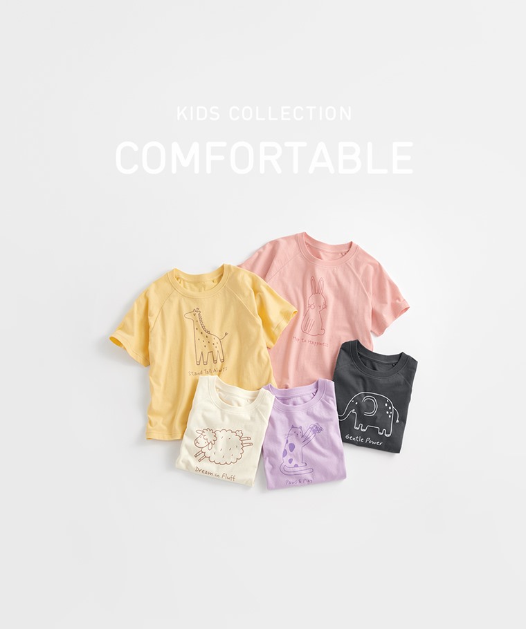 竹節棉寬鬆動物印花T恤-童(深灰-150)