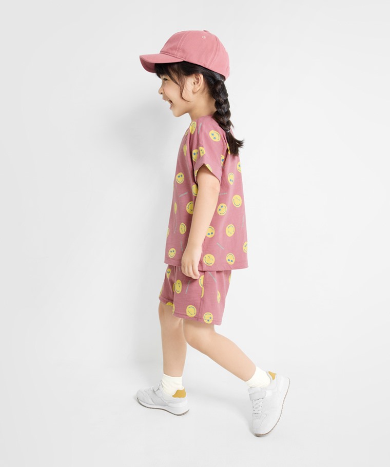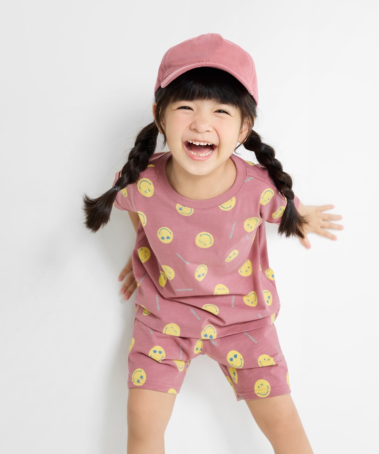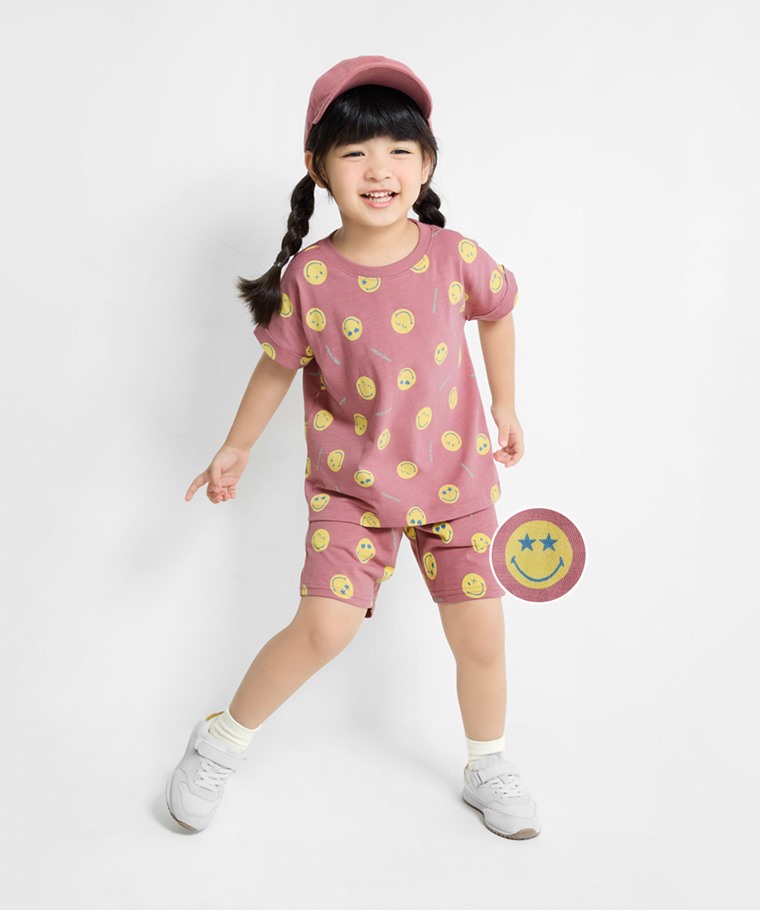 SmileyWorld®竹節棉印花口袋短褲-童(深灰粉-110)