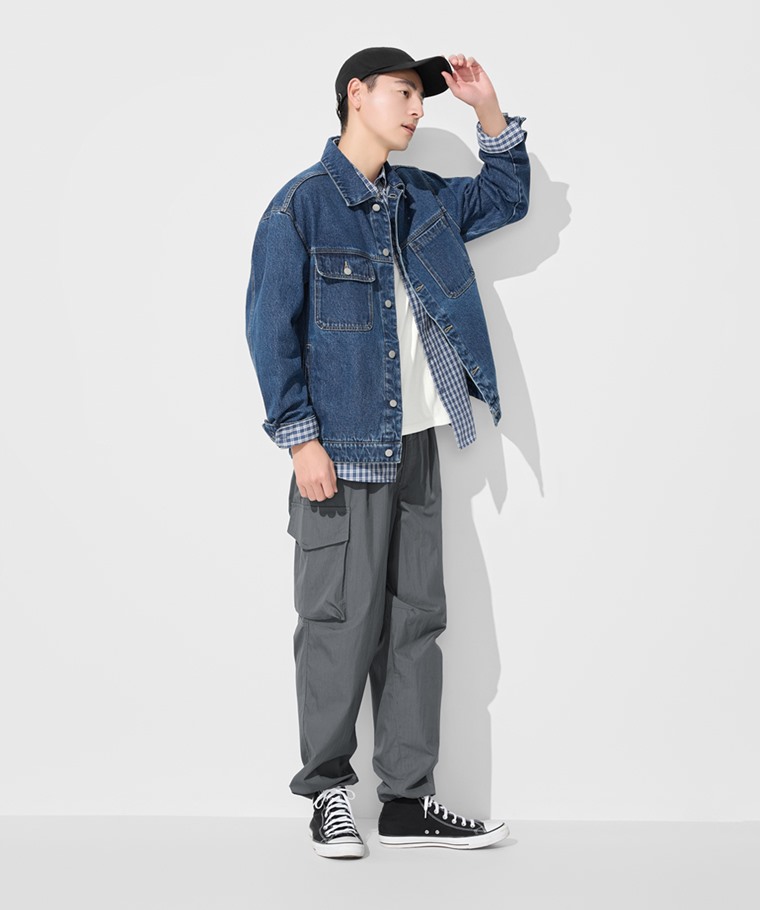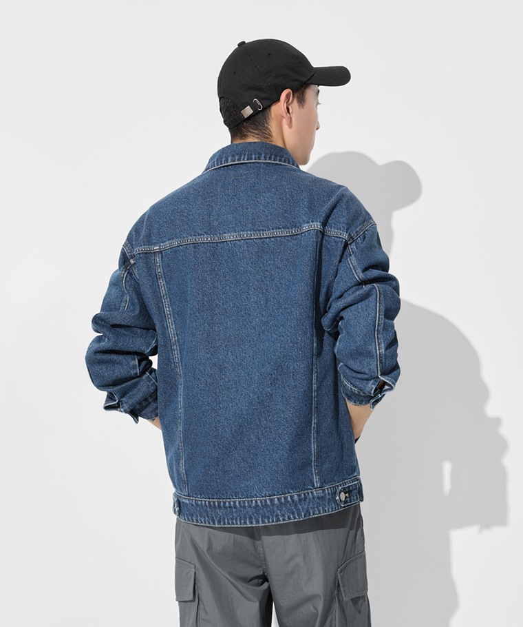 牛仔寬版外套-男(深藍-S)