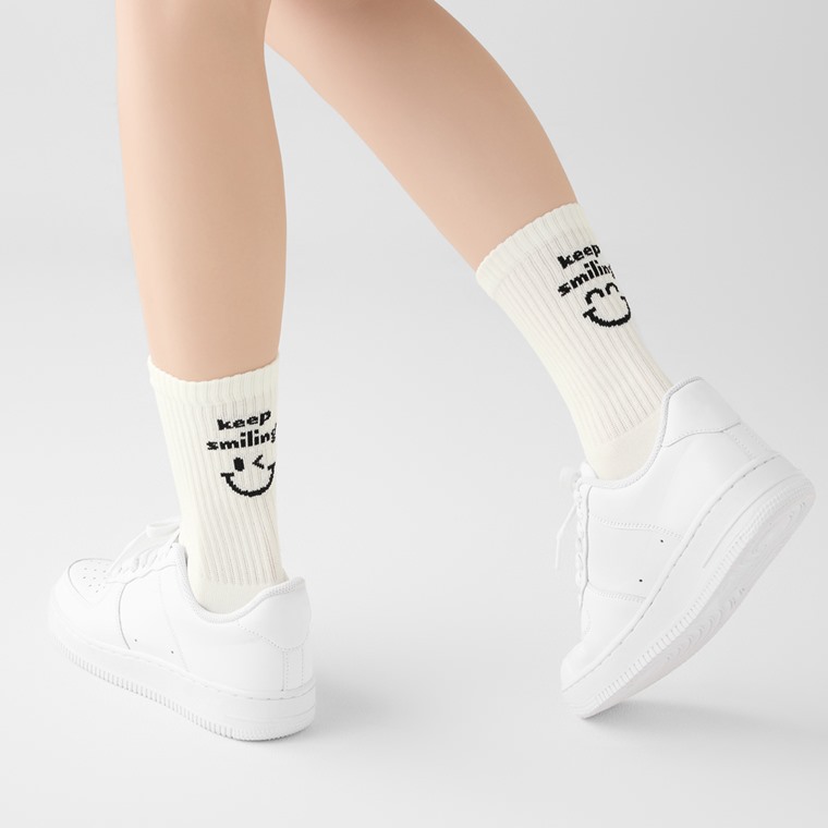 S.W.SMILEY®文字中筒襪-女(米白-F)