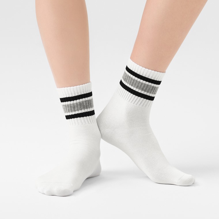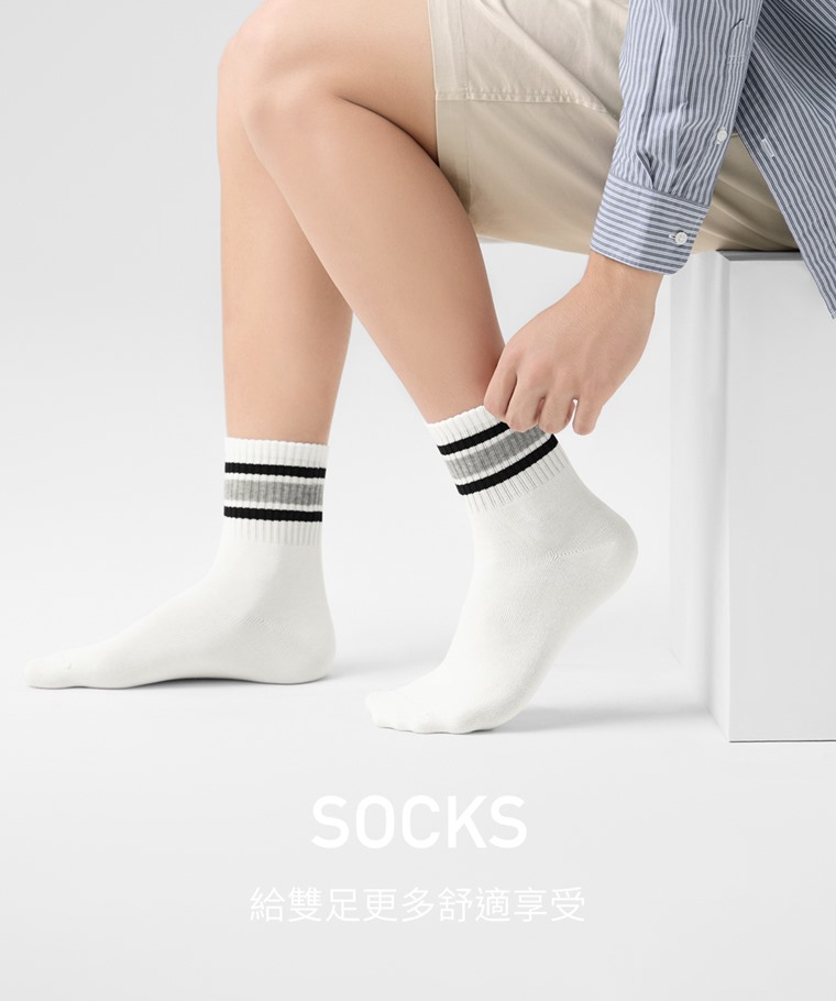 羅紋配條中筒襪-男(白色-L)