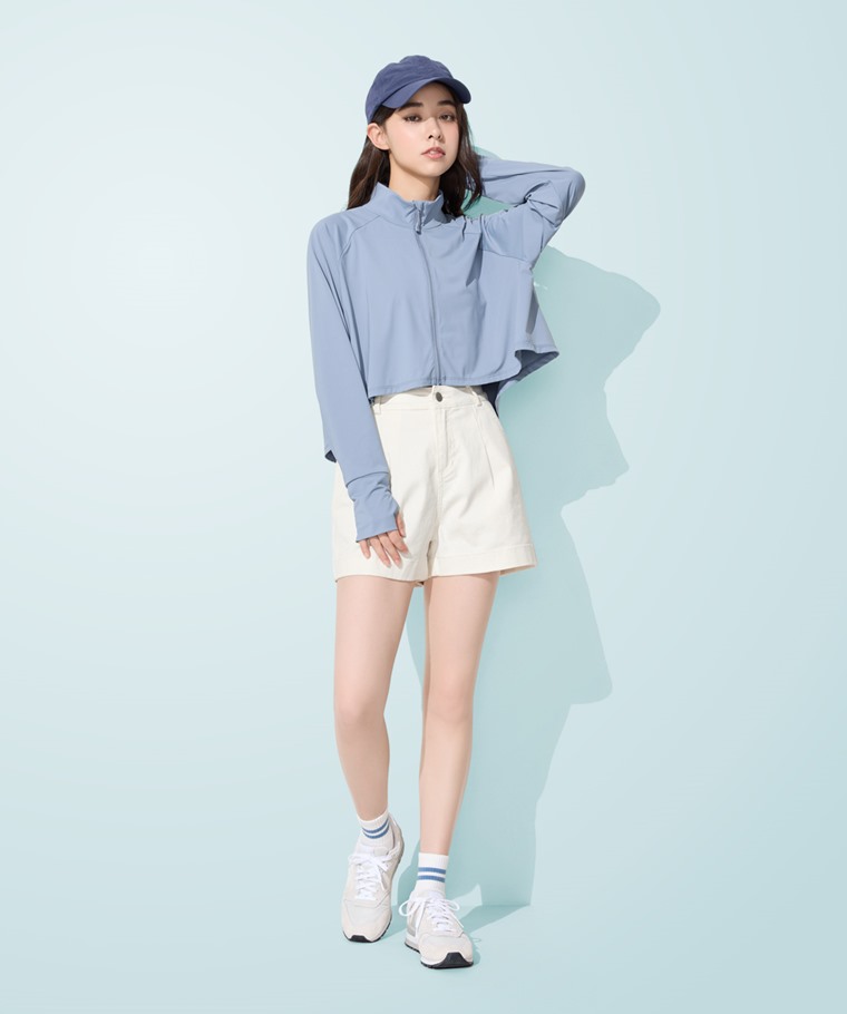 涼感抗UV寬襬立領外套-女(淺灰-S)